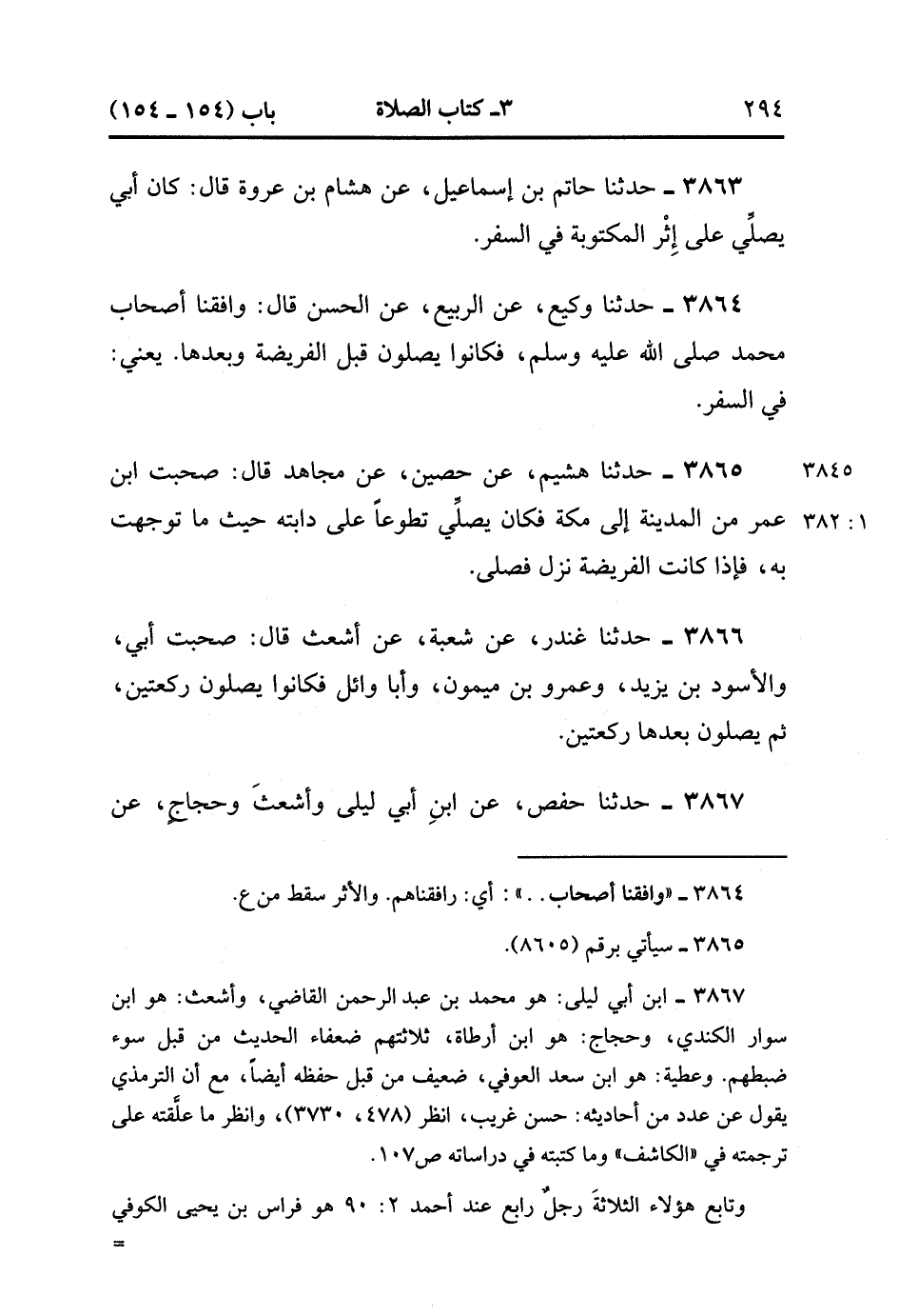 3867- حَدَّثَنَا حَفْصُ ، عَنِ ابْنِ أَبِي لَيْلَى وَأَشْعَثُ وَحَجَّاجٌ ، عَنْ عَطِيَّةَ ، عَنِ ابْنِ عُمَرَ ، عَنِ النَّبِيِّ صَلَّى الله عَلَيْهِ وَسَلَّمَ : أَنَّهُ كَانَ يَتَطَوَّعُ فِي السَّفَرِ. (1/382).