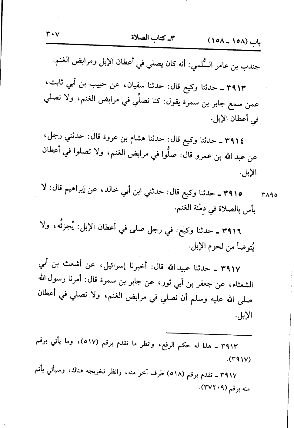 3913- حَدَّثَنَا وَكِيعٌ , قَالَ : حدَّثَنَا سُفْيَانُ ، عَنْ حَبِيبِ بْنِ أَبِي ثَابِتٍ ، عَمَّنْ سَمِعَ جَابِرَ بْنَ سَمُرَةَ يَقُولُ : كُنَّا نُصَلِّي فِي مَرَابِضِ الْغَنَمِ وَلا نُصَلِّي فِي أَعْطَانِ الإِبِلِ.