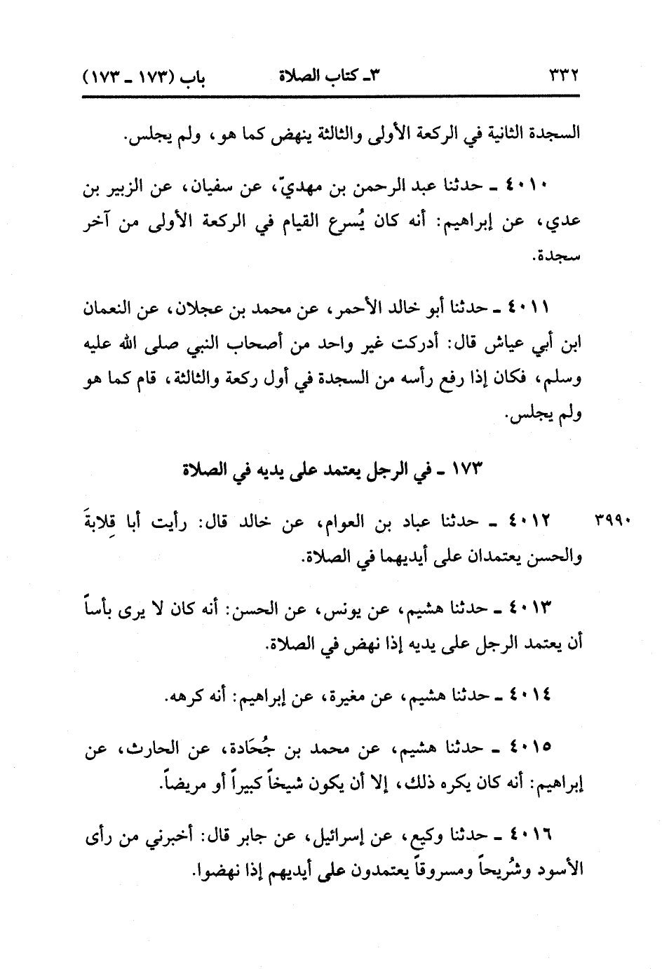 173- في الرجل يَعْتَمِدُ عَلَى يَدَيْهِ فِي الصَّلاَةِ.