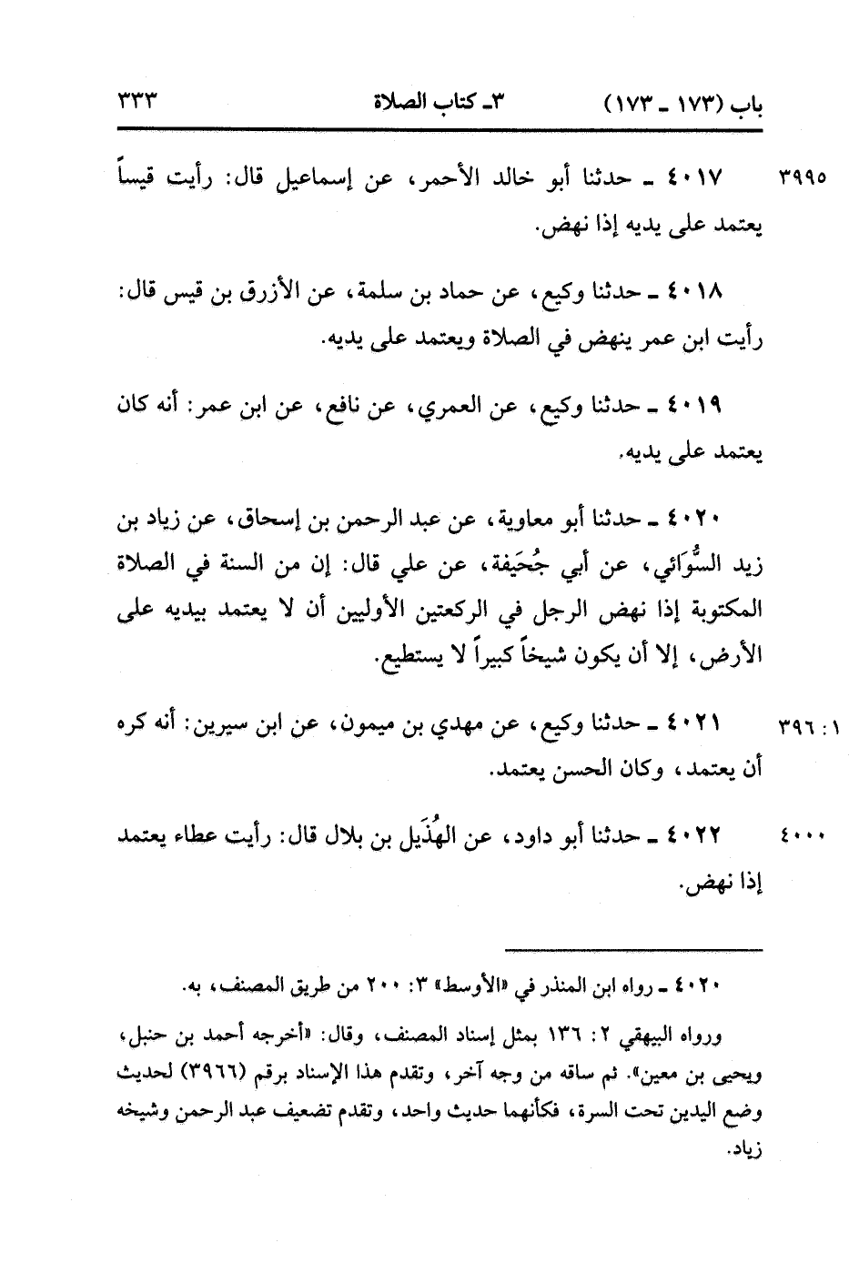4017- حَدَّثَنَا أَبُو خَالِدٍ الأَحْمَرِِِ ، عَنْ إسْمَاعِيلَ ، قَالَ : رَأَيْتُ قَيْسًا يَعْتَمِدُ عَلَى يَدَيْهِ إذَا نَهَضَ.