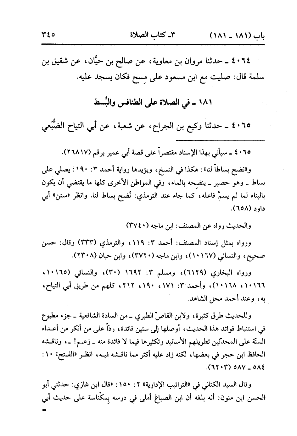 181- في الصلاة عَلَى الطَّنَافِسِ وَالْبُسُطِ.