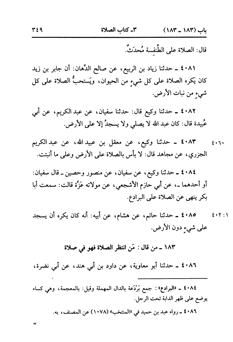 4081- حَدَّثَنَا زِيَادُ بْنُ الرَّبِيعِ ، عَنْ صَالِحٍ الدَّهَان : أَنَّ جَابِرَ بْنَ زَيْدٍ كَانَ يَكْرَهُ الصَّلاَةَ عَلَى كُلِّ شَيْءٍ مِنَ الْحَيَوَانِ ، وَيَسْتَحِبُّ الصَّلاَةَ عَلَى كُلِّ شَيْءٍ مِنْ نَبَاتِ الأَرْضِ.