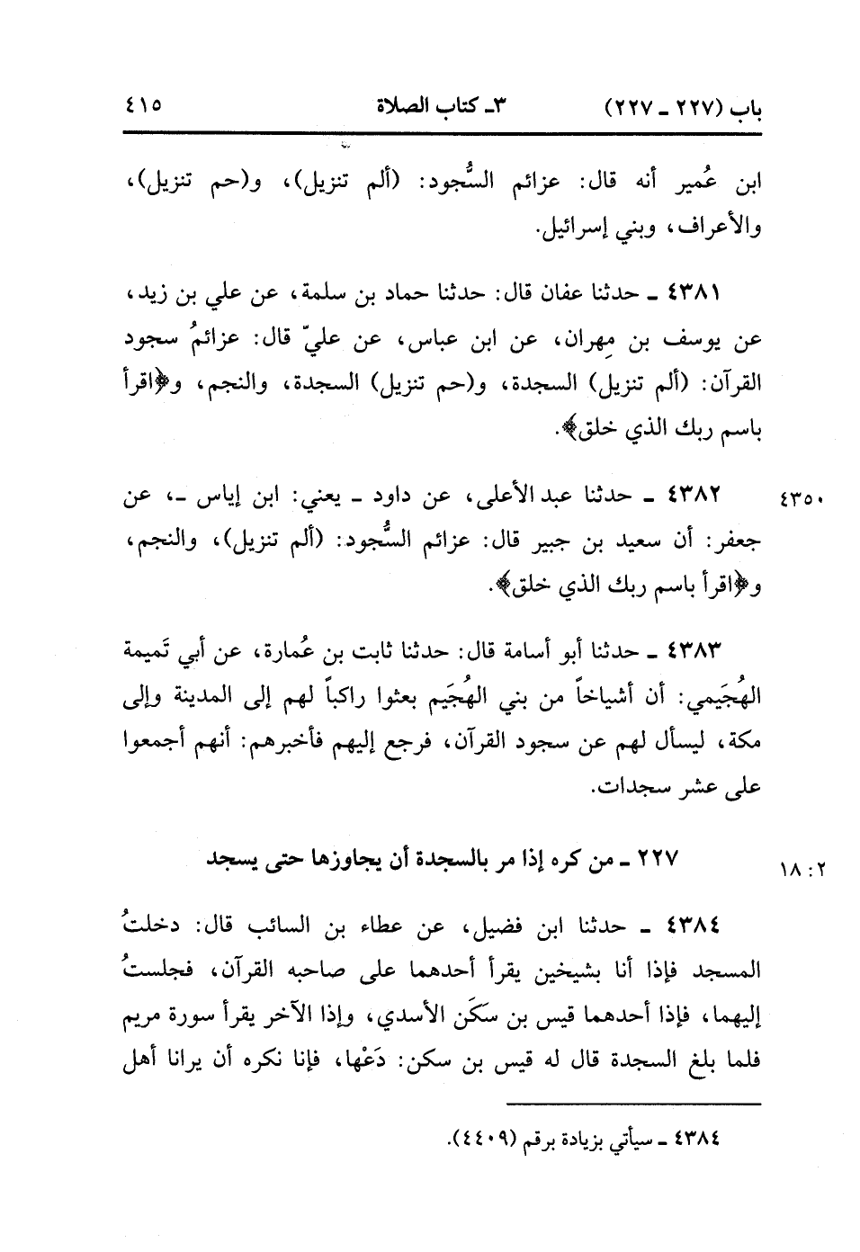 227- من كره إذَا مَرَّ بِالسَّجْدَةِ أَنْ يُجَاوِزَهَا حَتَّى يَسْجُدَ.