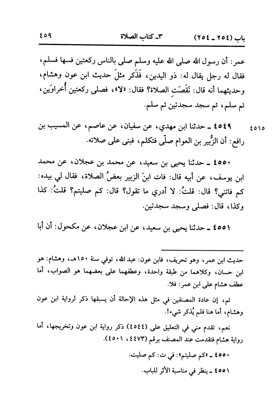 4549- حَدَّثَنَا ابْنُ مَهْدِيٍّ ، عَنْ سُفْيَانَ ، عَنْ عَاصِمٍ ، عَنِ الْمُسَيَّبِ بْنِ رَافِعٍ : أَنَّ الزُّبَيْرَ بْنَ الْعَوَّامِ صَلَّى فَتَكَلَّمَ فَبَنَى عَلَى صَلاَتِهِ.