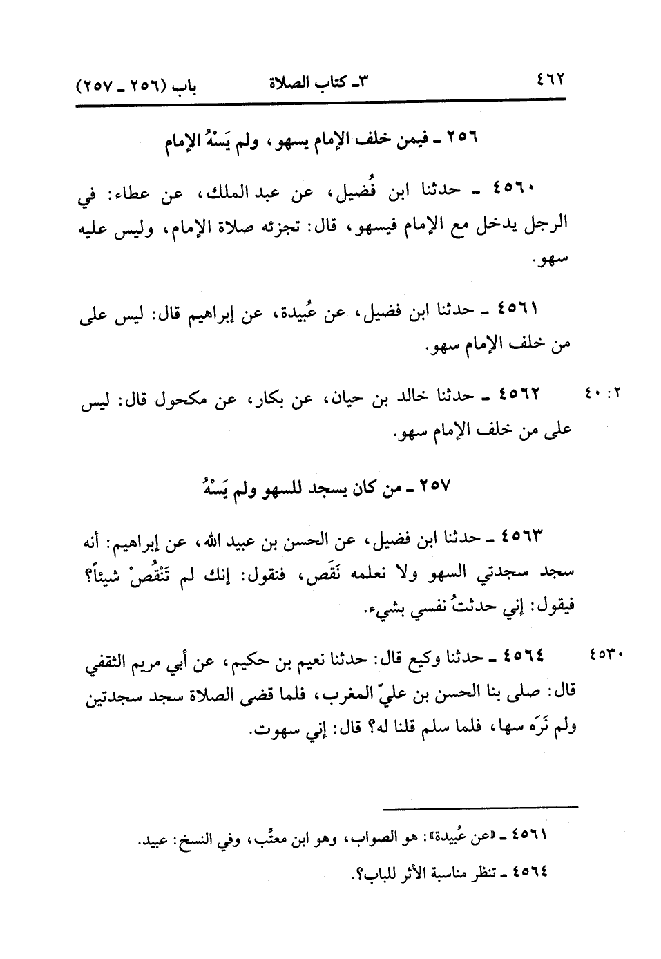 4561- حَدَّثَنَا ابْنُ فُضَيْلٍ ، عَنْ عُبَيْدة ، عَنْ إبْرَاهِيمَ ، قَالَ : لَيْسَ عَلَى مَنْ خَلْفَ الإِمَام سَهْوٌ.