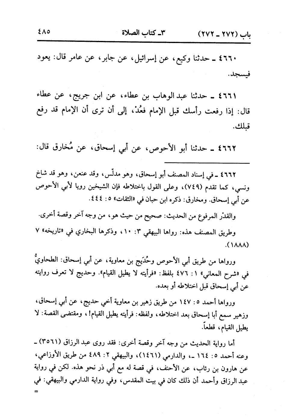 4661- حَدَّثَنَا عَبْدُ الْوَهَّابِ بْنُ عَطَاءٍ ، عَنِ ابْنِ جُرَيْجٍ ، عَنْ عَطَاءٍ ، قَالَ : إذَا رَفَعْتَ رَأْسَك قَبْلَ الإِمَام فَعُدْ إلَى أَنْ تَرَى أَنَّ الإِمَام قَدْ رَفَعَ قَبْلَك. (2/50).