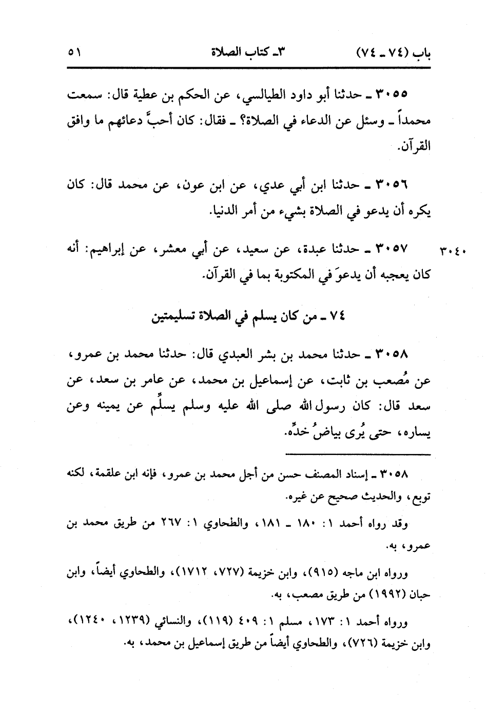 74- مَنْ كَانَ يُسَلِّمُ فِي الصَّلاَةِ تَسْلِيمَتَيْنِ.
