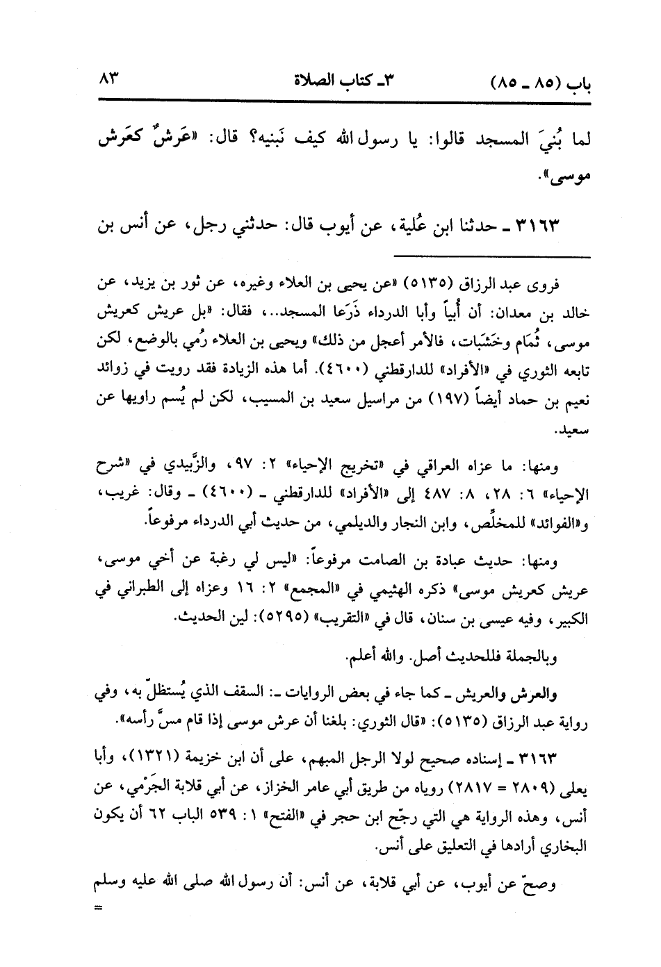 3163- حَدَّثَنَا ابْنُ عُلَيَّةَ ، عَنْ أَيُّوبَ ، قَالَ : حدَّثَنِي رَجُلٌ ، عَنْ أَنَسِ بْنِ مَالِكٍ ، قَالَ : كَانَ يُقَالُ : لَيَأْتِيَنَّ عَلَى النَّاسِ زَمَانٌ يَبْنُونَ الْمَسَاجِدَ يَتَبَاهَوْنَ بِهَا ، وَلا يَعْمُرُونَهَا إِلاَّ قَلِيلاً. (1/309).