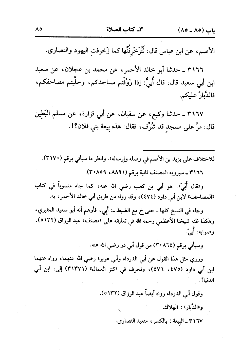 3166- حَدَّثَنَا أَبُو خَالِدٍ الأَحْمَرِِِ ، عَنْ مُحَمَّدِ بْنِ عَجْلاَنَ ، عَنْ سَعِيدِ بْنِ أَبِي سَعِيدٍ ، قَالَ : قَالَ أُبَيٌّ : إذَا زَوَّقْتُمْ مَسَاجِدَكُمْ ، وَحَلَّيْتُمْ مَصَاحِفَكُمْ ، فَالدُّبَارُ عَلَيْكُمْ.