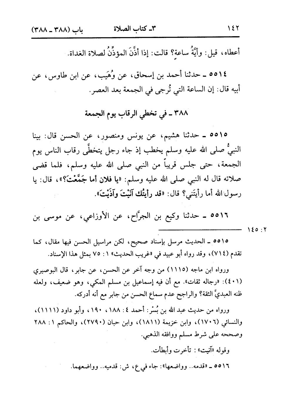 388- فِي تَخَطِّي الرِّقَابِ يَوْمَ الْجُمُعَةِ.