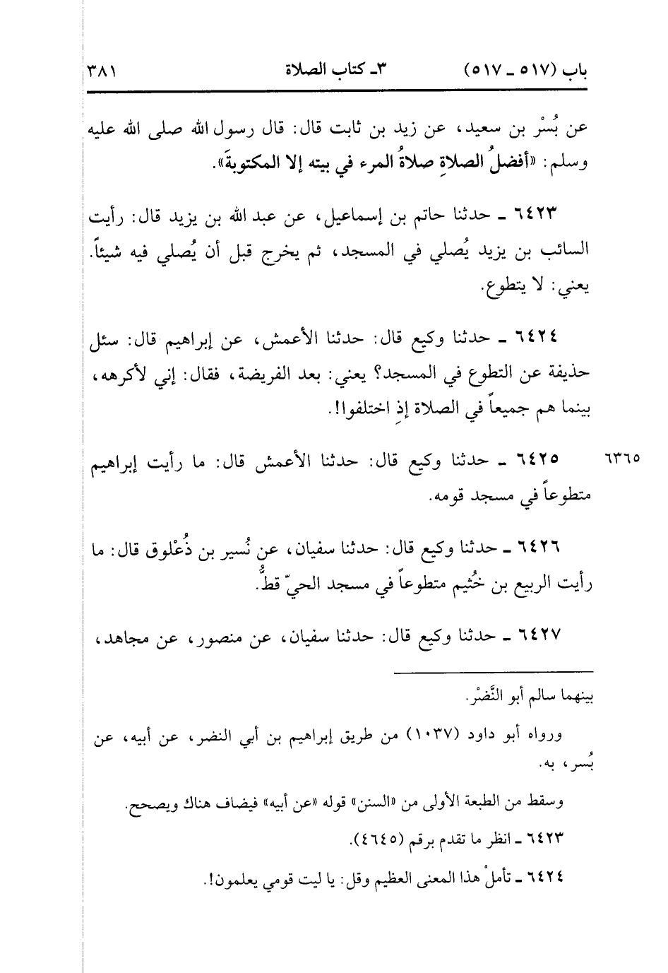 6427- حَدَّثَنَا وَكِيعٌ , قَالَ : حدَّثَنَا سُفْيَانُ ، عَنْ مَنْصُورٍ ، عَنْ مُجَاهِدٍ ، عَنْ أَبِي مَعْمَرٍ ، قَالَ : إِذَا صُلِّيَتَ الْمَكْتُوبَةُ فَبَيْتُك. (2/245).