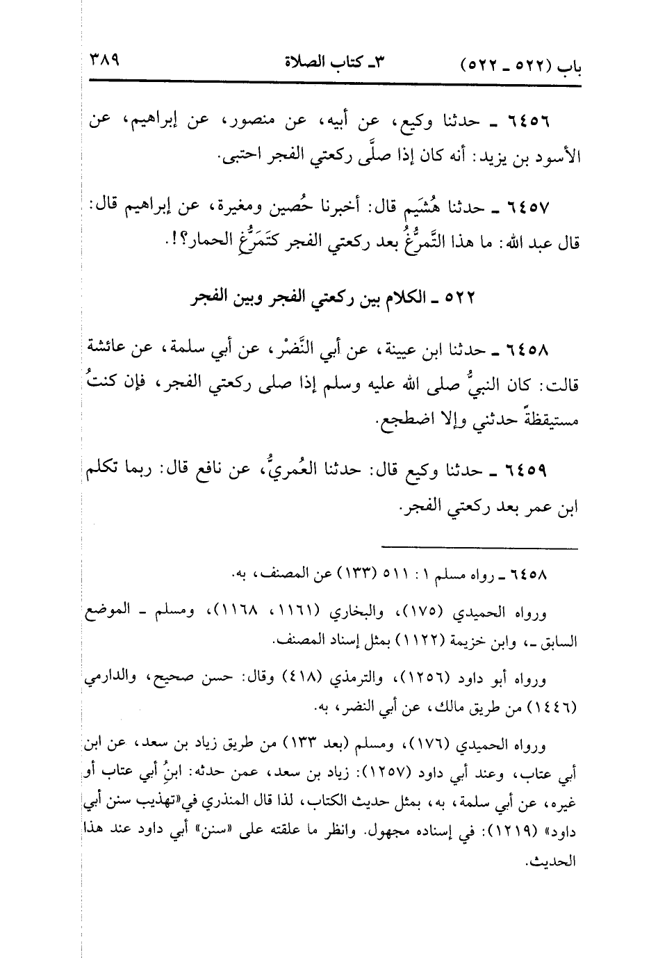6459- حَدَّثَنَا وَكِيعٌ , قَالَ : حدَّثَنَا الْعُمَرِيُّ ، عَنْ نَافِعٍ ، قَالَ : رُبَّمَا تَكَلَّمَ ابْنُ عُمَرَ بَعْدَ رَكْعَتَيِ الْفَجْرِ. (2/249).