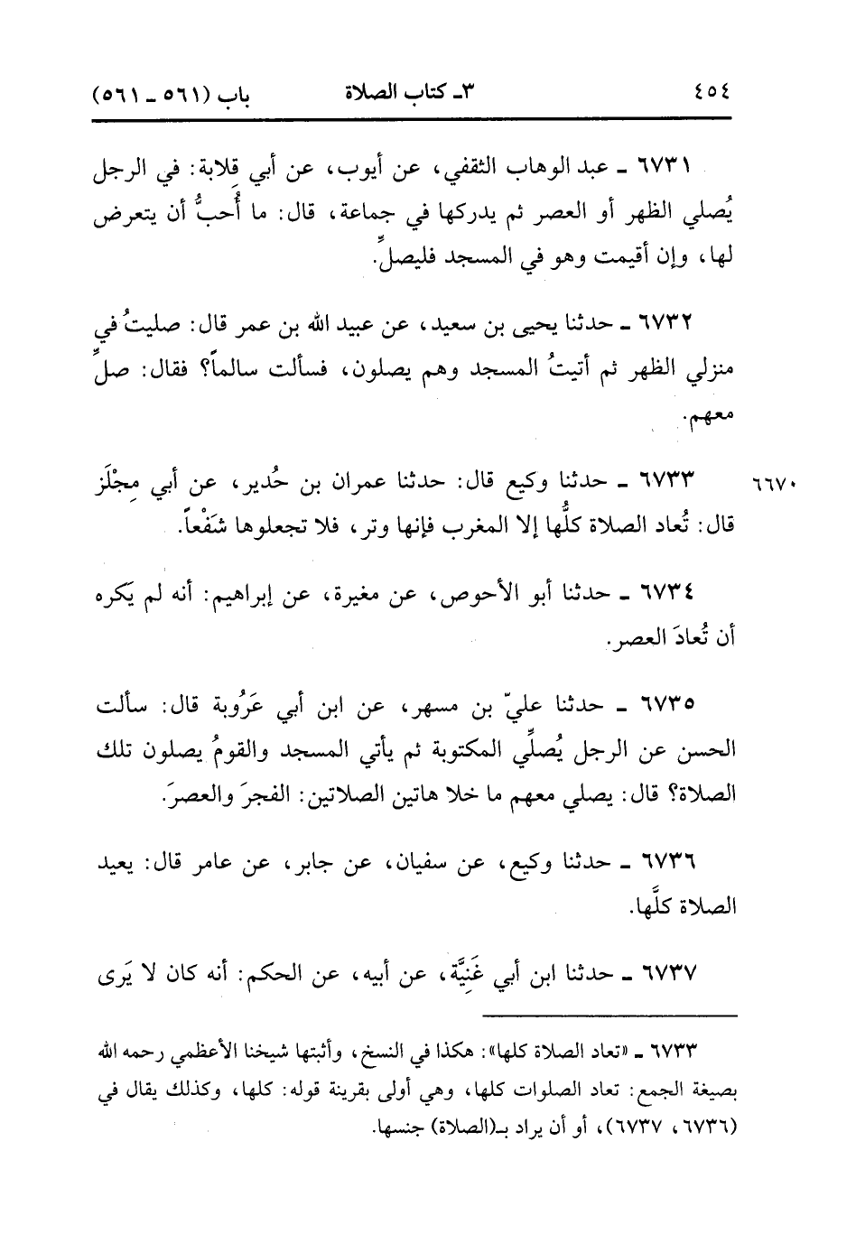 6737- حَدَّثَنَا ابْنُ أَبِي غَنِيَّةَ ، عَنْ أَبِيهِ ، عَنِ الْحَكَمِ ؛ أَنَّهُ كَانَ لاَ يَرَى بَأْسًا بِإِعَادَةِ الصَّلاَةَ كُلِّهَا إِذَا لَمْ يُصَلِّهِنَّ فِي جَمَاعَةٍ ، إِلاَّ صَلاَةَ الْفَجْرِ ، فَإِنَّهُ كَانَ يَكْرَهُ إِعَادَةَ صَلاَةِ الْفَجْرِ. (2/278).
