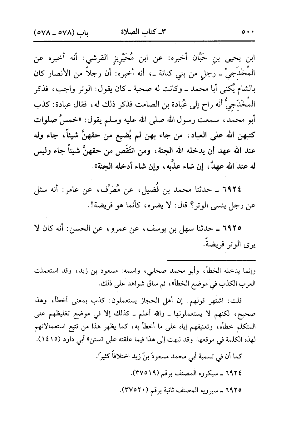 6925- حَدَّثَنَا سَهْلُ بْنُ يُوسُفَ ، عَنْ عَمْرٍو ، عَنِ الْحَسَنِ ؛ أَنَّهُ كَانَ لاَ يَرَى الْوِتْرَ فَرِيضَةً. (2/296).