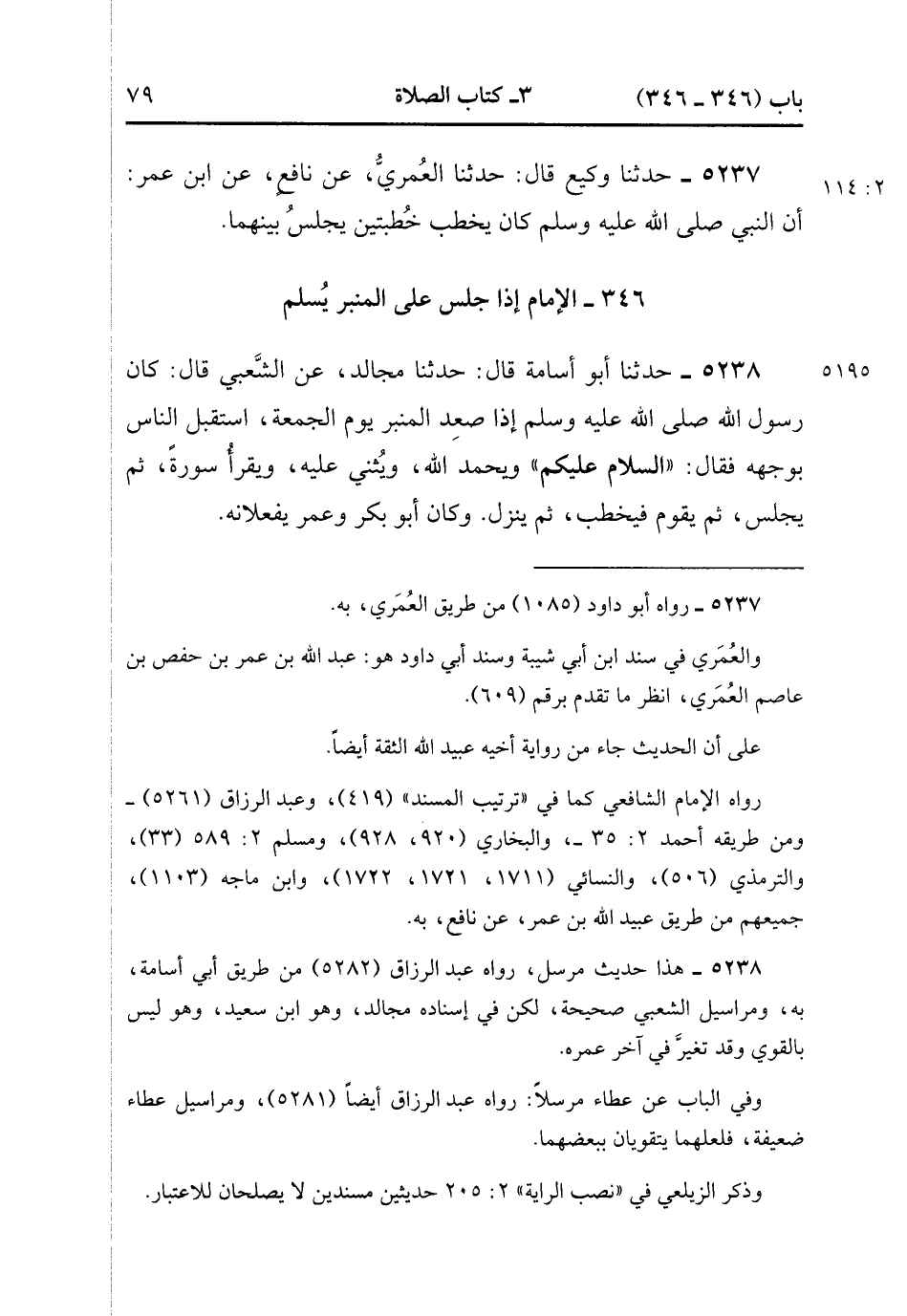 346- الإِمَامُ إِذَا جَلَسَ عَلَى الْمِنْبَرِ يُسَلِّمُ.