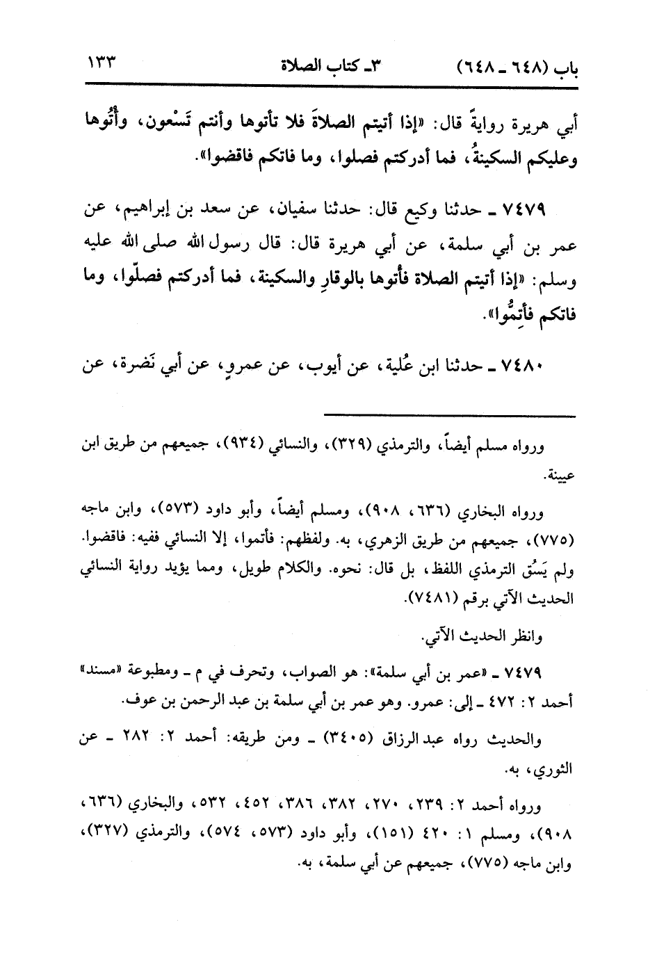 7479- حَدَّثَنَا وَكِيعٌ , قَالَ : حدَّثَنَا سُفْيَانُ ، عَنْ سَعْدِ بْنِ إِبْرَاهِيمَ ، عَنْ عُمَرَ بْنِ أَبِي سَلَمَةَ ، عَنْ أَبِي هُرَيْرَةَ ، قَالَ : قَالَ رَسُولُ اللهِ صَلَّى الله عَلَيْهِ وَسَلَّمَ : إذَا أَتَيْتُمَ الصَّلاَة فَأْتُوهَا بِالْوَقَارِ وَالسَّكِينَةِ فَمَا أَدْرَكْتُمْ فَصَلُّوا وَمَا فَاتَكُمْ فَأَتِمُّوا.