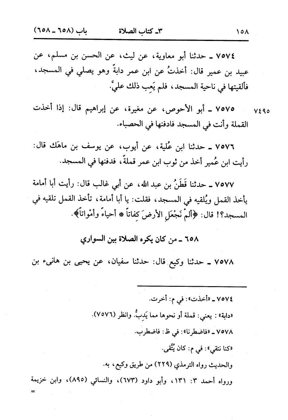 658- مَنْ كَانَ يَكْرَهُ الصَّلاَة بَيْنَ السَّوَارِي.