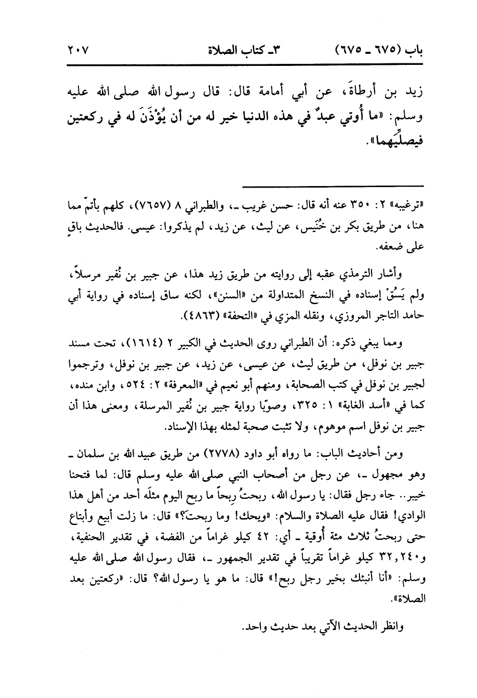 7714- حَدَّثَنَا حَفْصُ بْنُ غِيَاثٍ ، حَدَّثَنَا لَيْثٌ ، عَنْ عِيسَى ، عَنْ زَيْدِ بْنِ أَرْطَاةَ ، عَنْ أَبِي أُمَامَةَ ، قَالَ : قَالَ رَسُولُ اللهِ صَلَّى الله عَلَيْهِ وَسَلَّمَ : مَا أُوتِيَ عَبْدٌ فِي هَذِهِ الدُّنْيَا خَيْرٌ لَهُ مِنْ أَنْ يُؤْذَنَ لَهُ فِي رَكْعَتَيْنِ فَيُصَلِّيَهُمَا. (2/386).