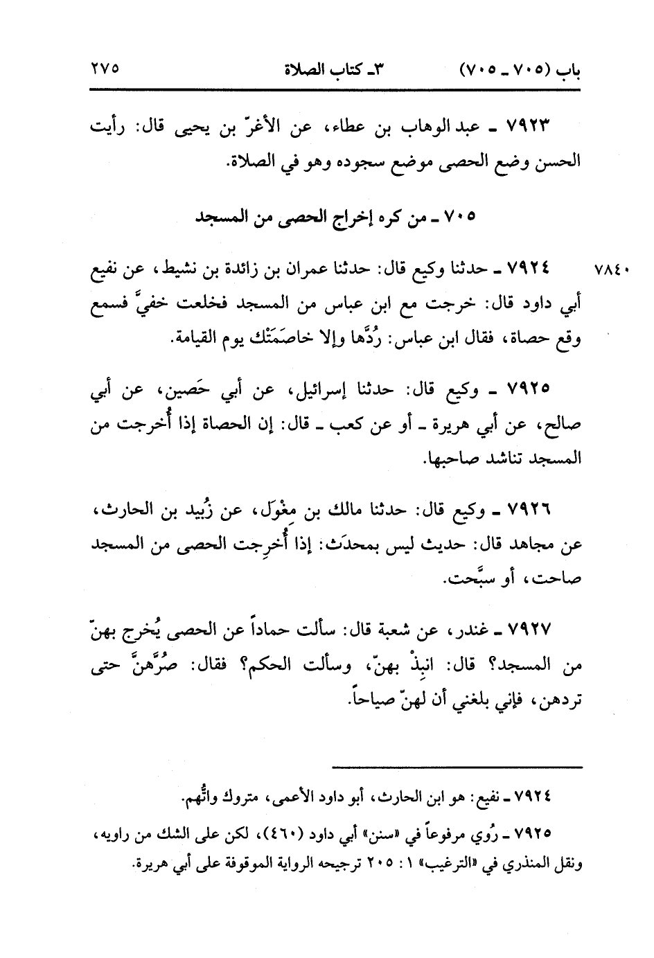 705- من كره إخْرَاجَ الْحَصَى مِنَ الْمَسْجِدِ.