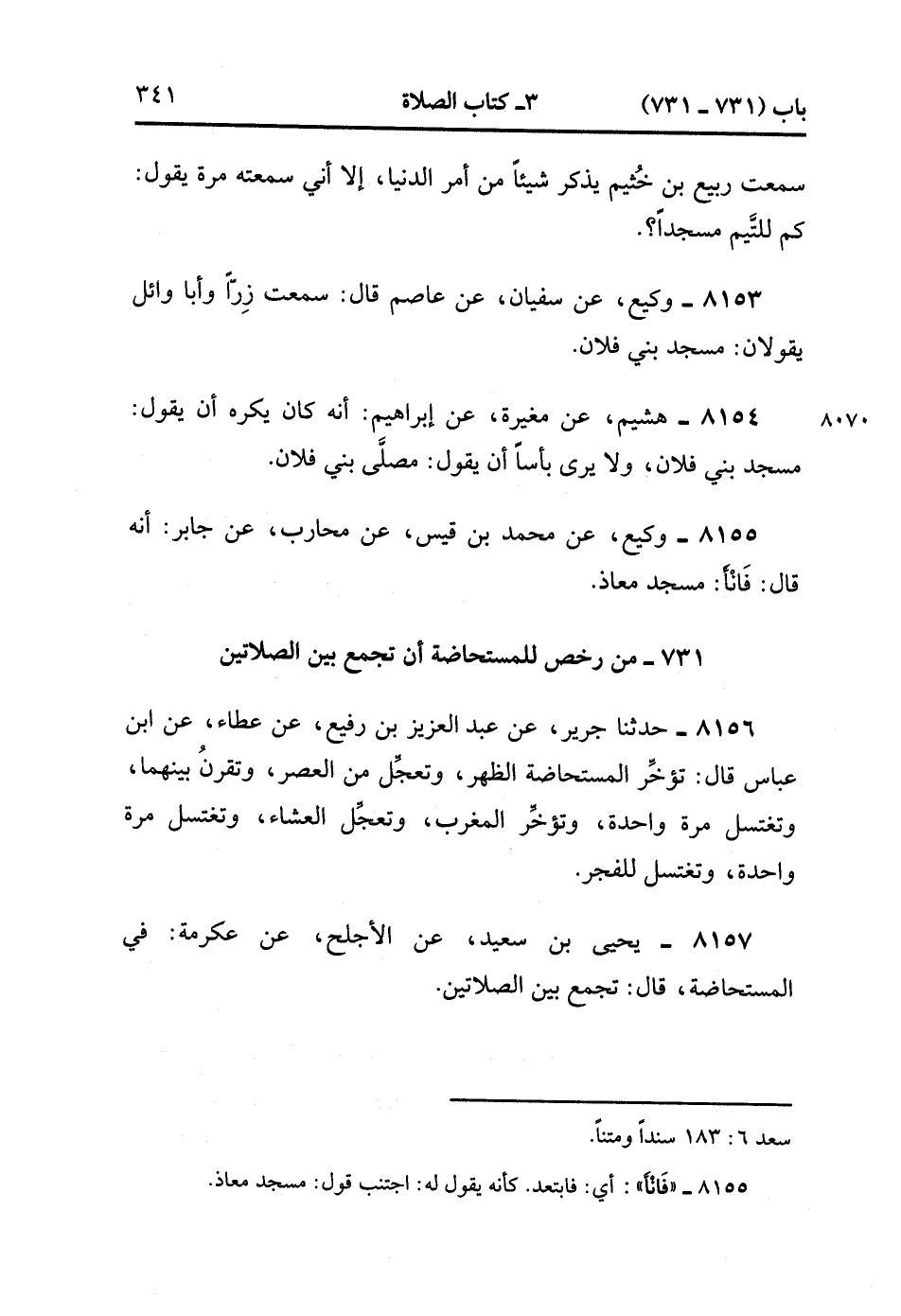 8153- حَدَّثَنَا وَكِيعٌ ، عَنْ سُفْيَانَ ، عَنْ عَاصِمٍ ، قَالَ : سَمِعْتُ زِرًّا وأَبَا وَائِلٍ يَقُولاَنِ : مَسْجِدُ بَنِي فُلاَنٍ.