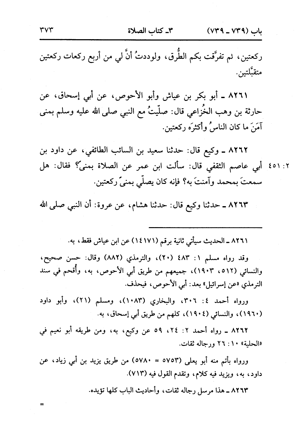 8261- حَدَّثَنَا أَبُو بَكْرِ بْنُ عَيَّاشٍ ، وَأَبُو الأَحْوَص ، عَنْ أَبِي إِسْحَاقَ ، عَنْ حَارِثَةَ بْنِ وَهْبٍ الْخُزَاعِيِّ ، قَالَ : صَلَّيْتُ مَعَ النَّبِيِّ صَلَّى الله عَلَيْهِ وَسَلَّمَ بِمِنًى آمَنَ مَا كَانَ النَّاسُ وَأَكْثَره رَكْعَتَيْنِ.