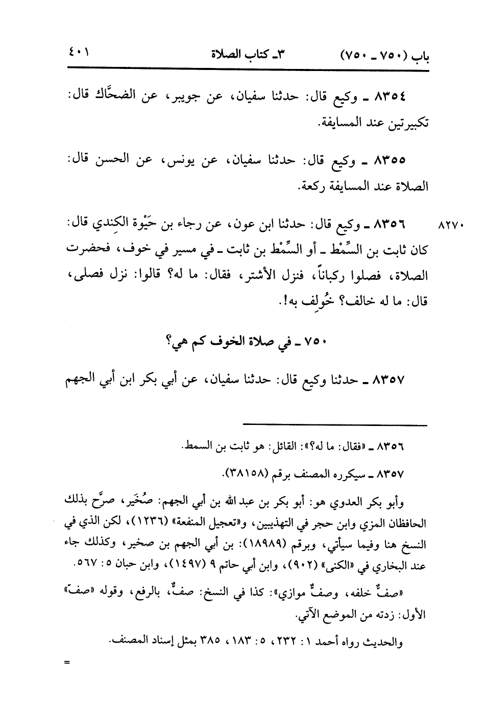 8356- حَدَّثَنَا وَكِيعٌ , قَالَ : حدَّثَنَا ابْنُ عَوْنٍ ، عَنْ رَجَاءِ بْنِ حَيْوَةَ الْكِنْدِيِّ ، قَالَ : كَانَ ثَابِتُ بْنُ السِّمْطِ ، أَوِ السِّمْطُ بْنُ ثَابِتٍ فِي مَسِيرٍ فِي خَوْفٍ فَحَضَرَتِ الصَّلاَة فَصَلَّوْا رُكْبَانًا فَنَزَلَ الأَشْتَرُ ، فَقَالَ : مَا لَهُ ؟ قَالُوا : نَزَلَ فَصَلَّى ، قَالَ : مَا لَهُ خَالَفَ خُولِفَ بِهِ. (2/461).