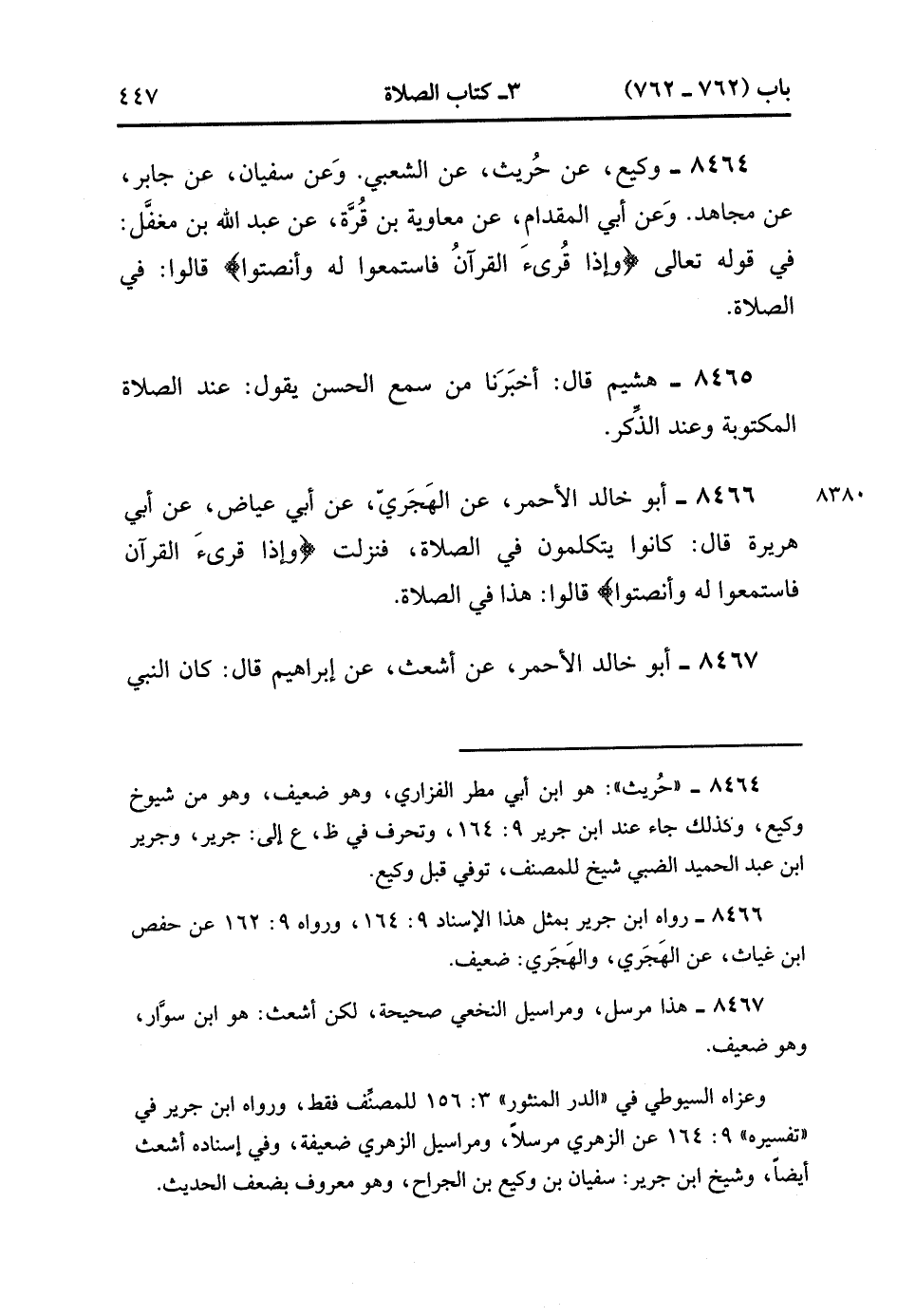 8464- حَدَّثَنَا وَكِيعٌ ، عَنْ حُرَيث ، عَنِ الشَّعْبِيِّ (ح) وَعَنْ سُفْيَانَ ، عَنْ جَابِرٍ ، عَنْ مُجَاهِدٍ (ح) وَعَنْ أَبِي الْمِقْدَامِ ، عَنْ مُعَاوِيَةَ بْنِ قُرَّةَ ، عَنْ عَبْدِ اللهِ بْنِ مُغَفَّلٍ : فِي قَوْلِهِ تَعَالَى : {وَإِذَا قُرِئَ الْقُرْآنُ فَاسْتَمِعُوا لَهُ وَأَنْصِتُوا} قَالُوا : فِي الصَّلاَةِ.