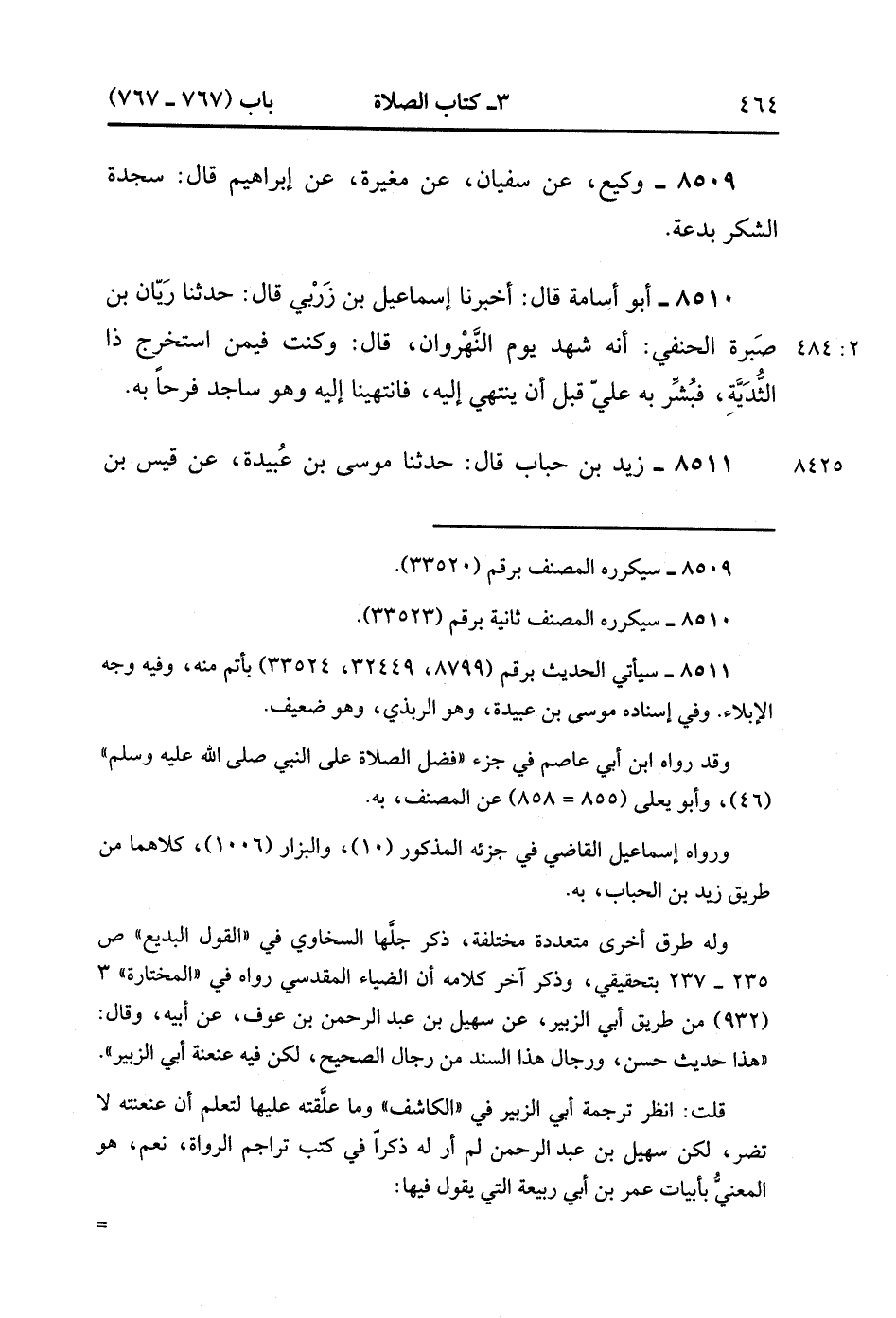 8509- حَدَّثَنَا وَكِيعٌ ، عَنْ سُفْيَانَ ، عَنْ مُغِيرَةَ ، عَنْ إبْرَاهِيمَ ، قَالَ : سَجْدَةُ الشُّكْرِ بِدْعَةٌ.