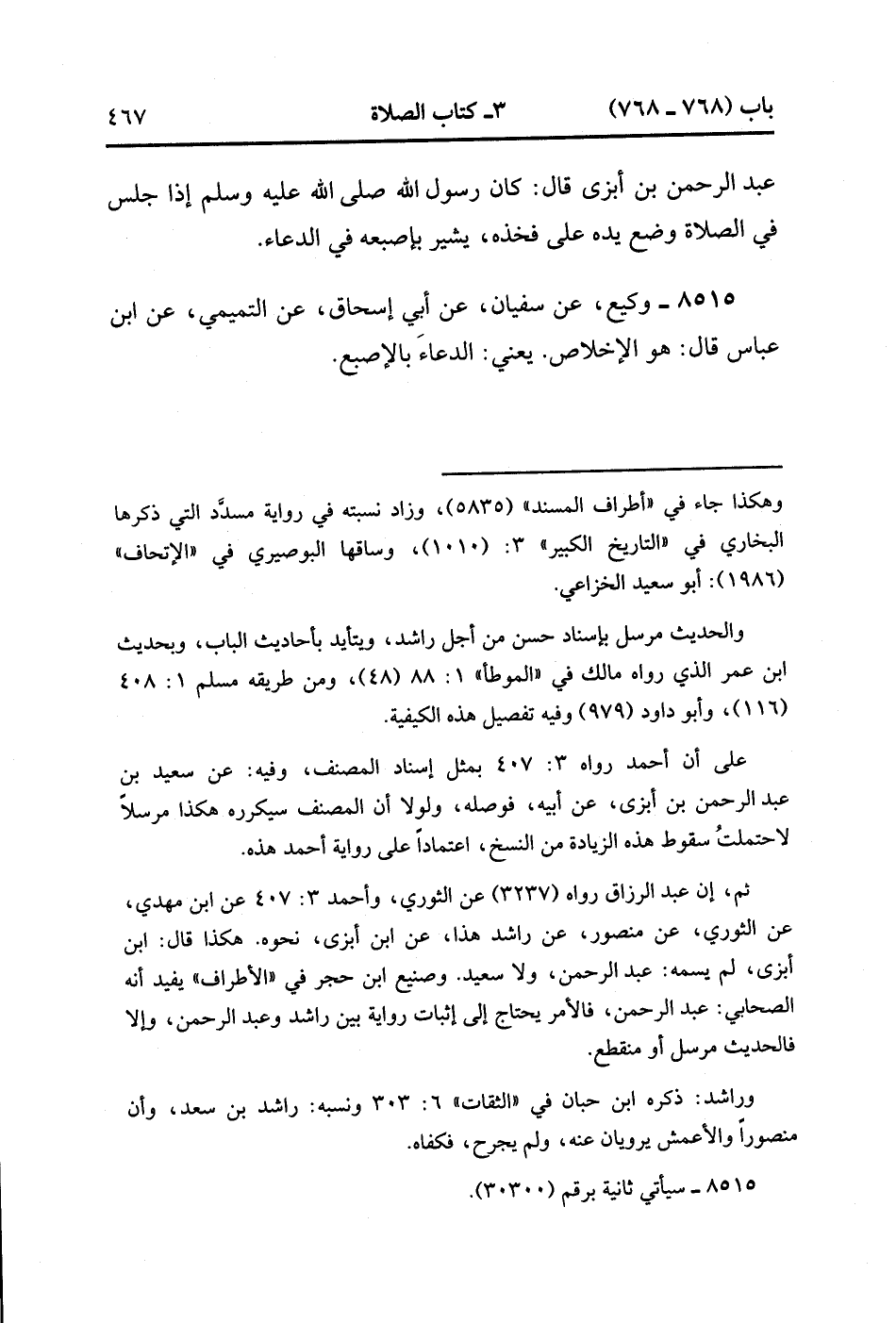 8515- حَدَّثَنَا وَكِيعٌ ، عَنْ سُفْيَانَ ، عَنْ أَبِي إِسْحَاقَ ، عَنِ التَّمِيمِيِّ ، عَنِ ابْنِ عَبَّاسٍ ، قَالَ : هُوَ الأَخْلاَصُ ، يَعْنِي الدُّعَاءَ بِالأَصْبَعِ. (2/484).