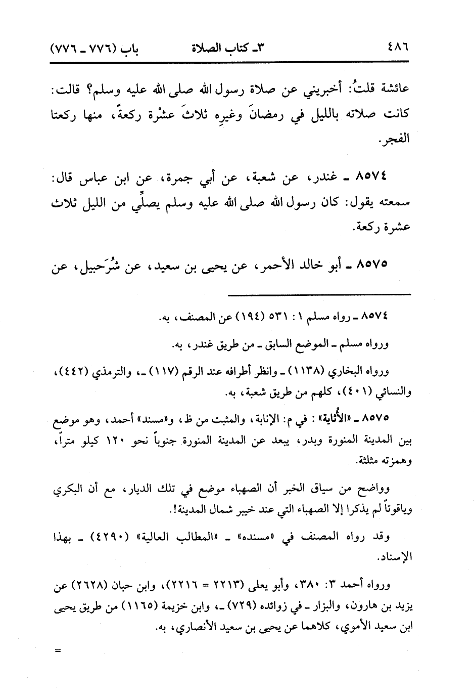 8574- حَدَّثَنَا غُنْدَرٌ ، عَنْ شُعْبَةَ ، عَنْ أَبِي جَمْرَةَ ، عَنِ ابْنِ عَبَّاسٍ ، قَالَ سَمِعْتُهُ يَقُولُ : كَانَ رَسُولُ اللهِ صَلَّى الله عَلَيْهِ وَسَلَّمَ يُصَلِّي مِنَ اللَّيْلِ ثَلاَثَ عَشْرَةَ رَكْعَةً. (2/491).