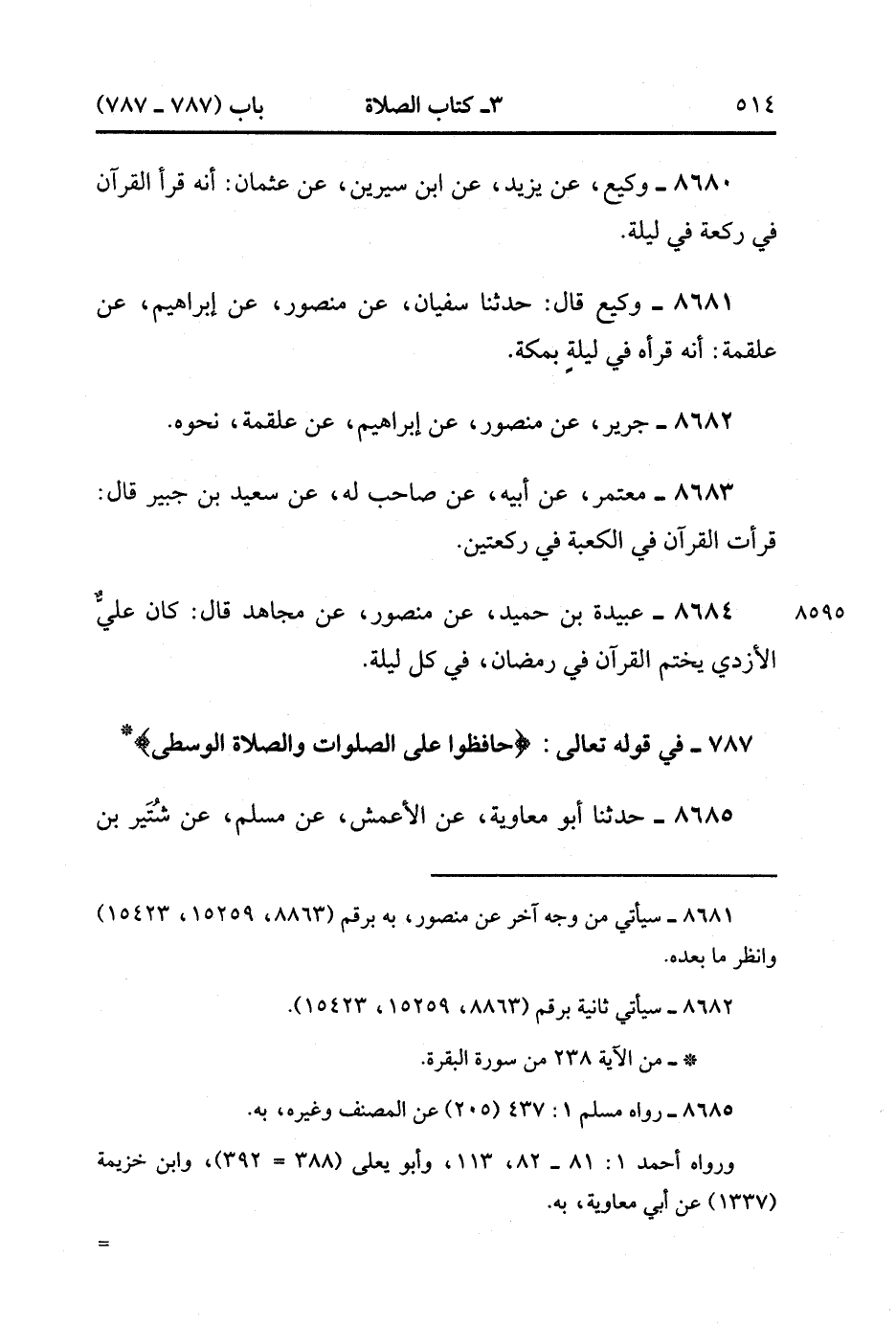 787- في قوله تَعَالَى : {حَافِظُوا عَلَى الصَّلَوَاتِ وَالصَّلاَة الْوُسْطَى}.