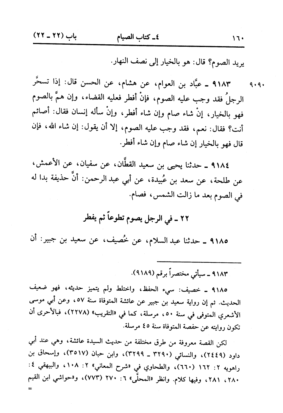 9184- حَدَّثَنَا يَحْيَى بْنُ سَعِيدٍ الْقَطَّانُ ، عَنْ سُفْيَانَ ، عَنِ الأَعْمَشِ ، عَنْ طَلْحَةَ ، عَنْ سَعْدِ بْنِ عُبَيْدَةَ ، عَنْ أَبِي عَبْدِ الرَّحْمَنِ ؛ أَنَّ حُذَيْفَةَ بَدَا لَهُ فِي الصَّوْمِ بَعْدَ مَا زَالَتِ الشَّمْسُ فَصَامَ.