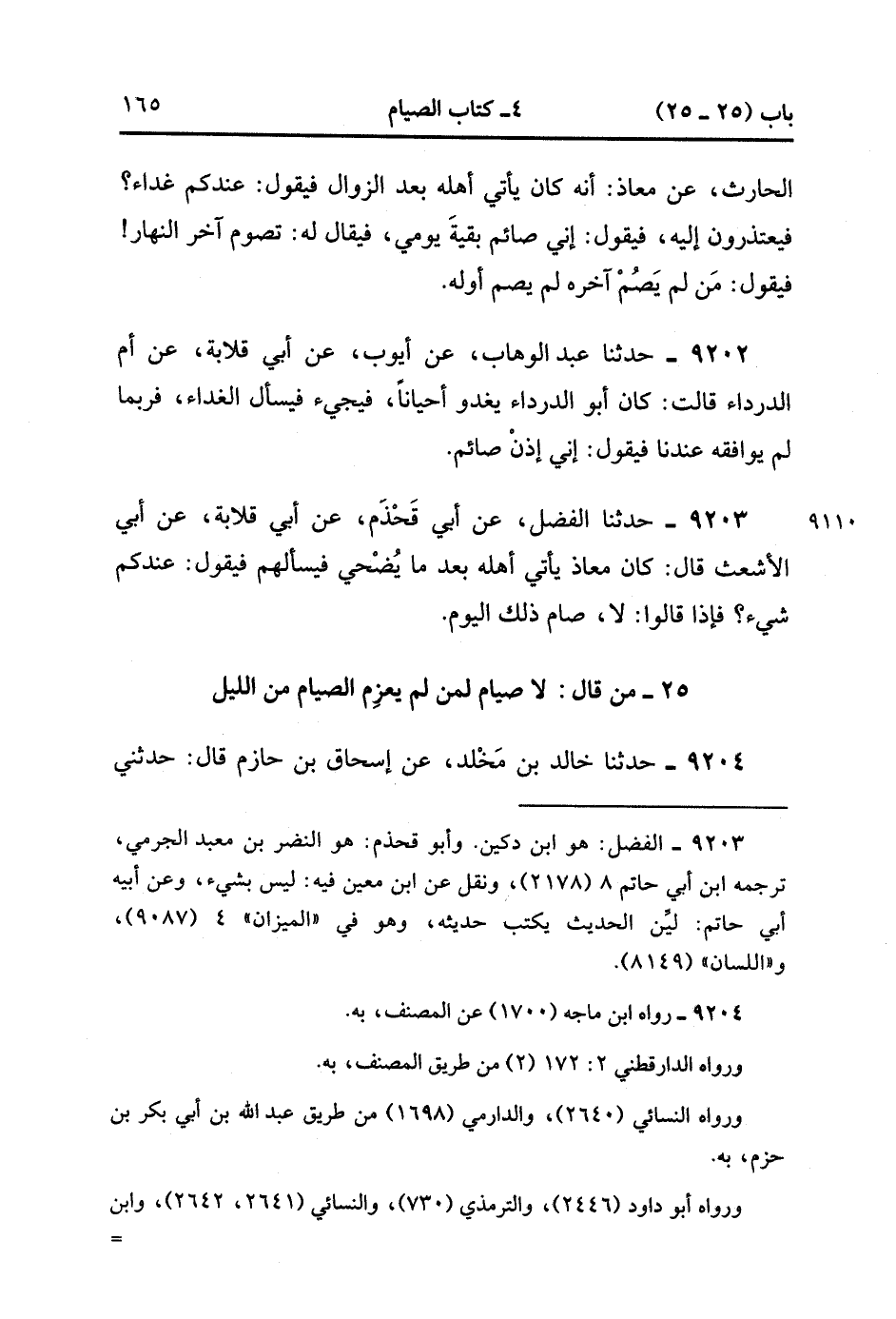 9203- حَدَّثَنَا الْفَضْلُ ، عَنْ أَبِي قَحْذَمٍ ، عَنْ أَبِي قِلاَبَةَ ، عَنْ أَبِي الأَشْعَثِ ، قَالَ : كَانَ مُعَاذٌ يَأْتِي أَهْلَهُ بَعْدَ مَا يُضْحي فَيَسْأَلُهُمْ فَيَقُولُ : عِنْدَكُمْ شَيْءٌ ؟ فَإِذَا قَالُوا لاَ ، صَامَ ذَلِكَ الْيَوْمَ. (3/31).