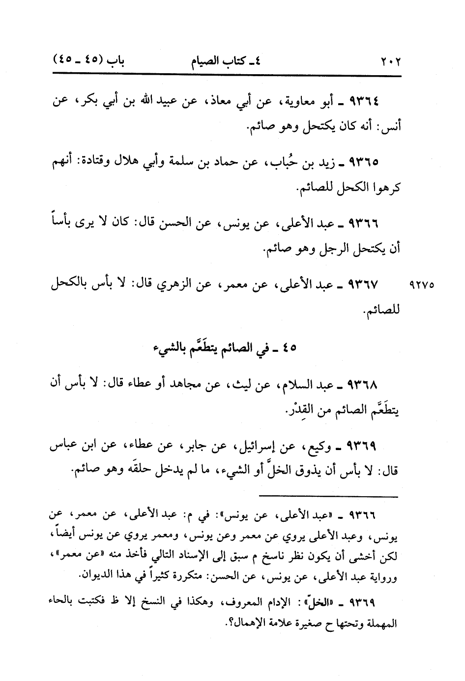 9365- حَدَّثَنَا زَيْدُ بْنُ حُبَابٍ ، عَنْ حَمَّادِ بْنِ سَلَمَةَ ، وَأَبِي هِلاَلٍ ، وَقَتَادَةَ ؛ أَنَّهُمْ كَرِهُوا الْكُحْلَ لِلصَّائِمِ.