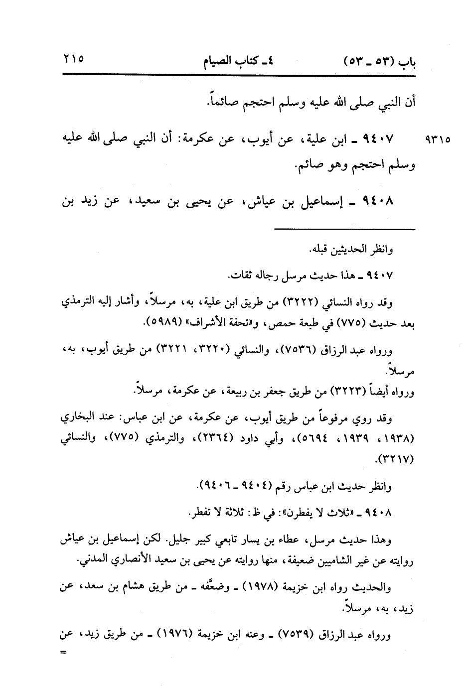9407- حَدَّثَنَا ابْنُ عُلَيَّةَ ، عَنْ أَيُّوبَ ، عَنْ عِكْرِمَةَ ؛ أَنَّ النَّبِيَّ صَلَّى الله عَلَيْهِ وَسَلَّمَ احْتَجَمَ وَهُوَ صَائِمٌ.