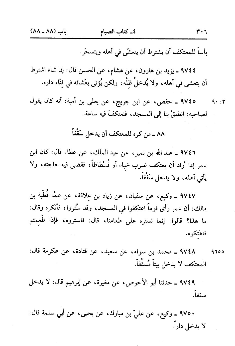 88- من كره لِلْمُعْتَكِفِ أَنْ يَدْخُلَ سَقْفًا.