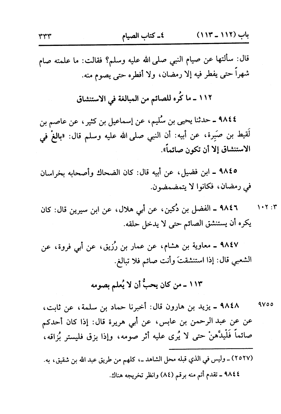 112- مَا كُرِه لِلصَّائِمِ مِنَ الْمُبَالَغَةِ فِي الاِسْتِنْشَاقِ.