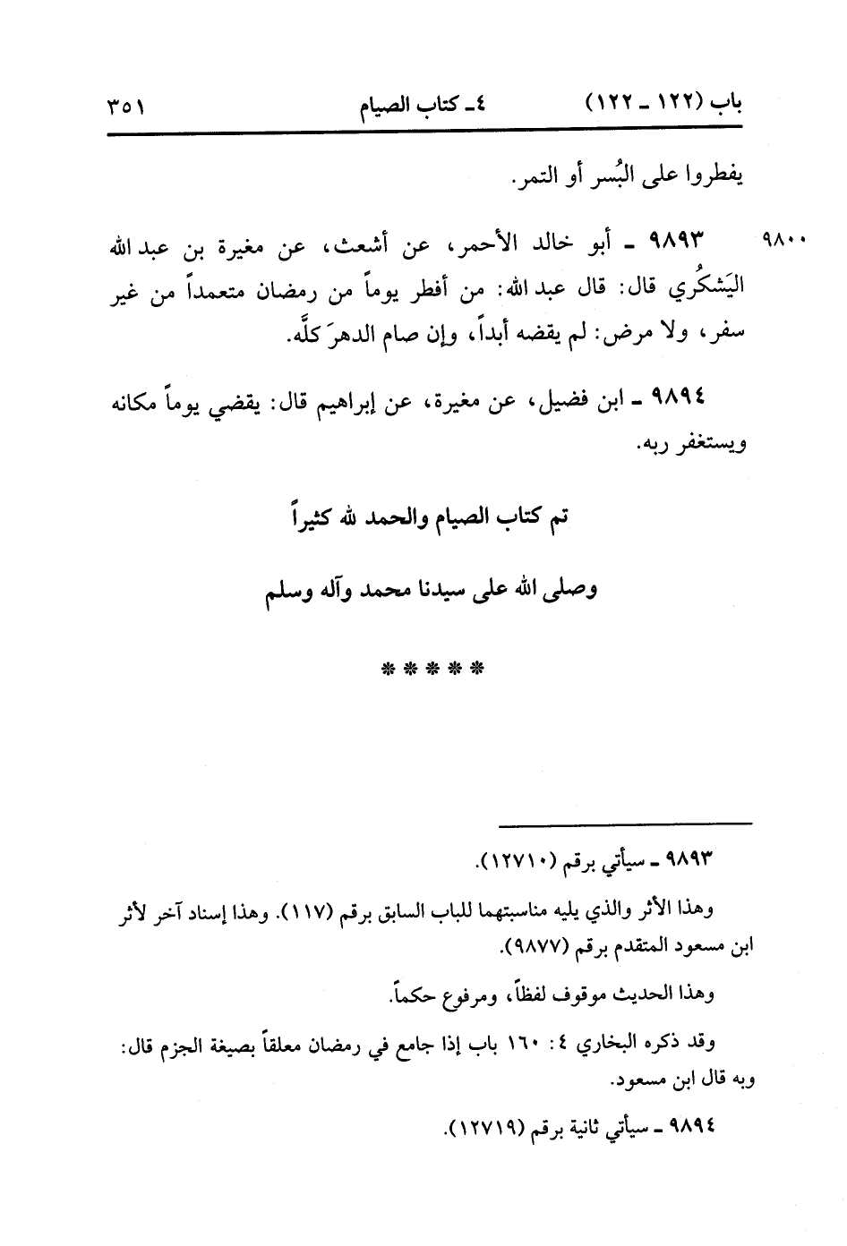 9893- حَدَّثَنَا أَبُو خَالِدٍ الأَحْمَرِِ ، عَنْ أَشْعَثَ ، عَنْ مُغِيرَةَ بْنِ عَبْدِ اللهِ الْيَشْكُرِيِّ ، قَالَ : قَالَ عَبْدُ اللهِ : مَنْ أَفْطَرَ يَوْمًا مِنْ رَمَضَانَ مُتَعَمِّدًا مِنْ غَيْرِ سَفَرٍ ، وَلاَ مَرَضٍ ، لَمْ يَقْضِهِ أَبَدًا وَإِنْ صَامَ الدَّهْرَ كُلَّهُ.