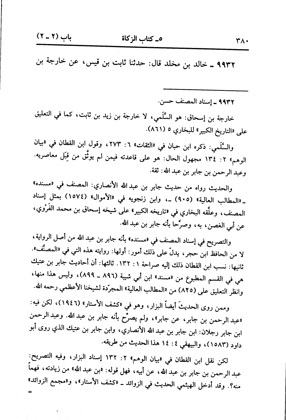 9932- حَدَّثَنَا خَالِدُ بْنُ مَخْلَدٍ , قَالَ : حدَّثَنَا ثَابِتٌ بْن قَيْسٍ ، عَنْ خَارِجَةَ بْنِ إِسْحَاقَ ، عَنْ عَبْدِ الرَّحْمَنِ بْنِ جَابِرِ بْنِ عَبْدِ اللهِ ، عَنْ أَبِيهِ ، قَالَ : قَالَ رَسُولُ اللهِ صَلَّى الله عَلَيْهِ وَسَلَّمَ : سَيَأْتِيكُمْ رَكْبٌ مُبْغَضُونَ ، فَإِنْ جَاؤُوكُمْ فَرَحِّبُوا بِهِمْ ، وَخَلُّوا بَيْنَهُمْ وَبَيْنَ مَا يَبْغُونَ ، فَإِنْ عَدَلُوا فَلأَنْفُسِهِمْ وَإِنْ ظَلَمُوا فَعَلَيْهِمْ ، وَأَرْضُوهُمْ فَإِنَّ تَمَامَ زَكَاتِكُمْ رِضَاهُمْ ، وَلْيَدْعُوا لَكُمْ. (3/115).