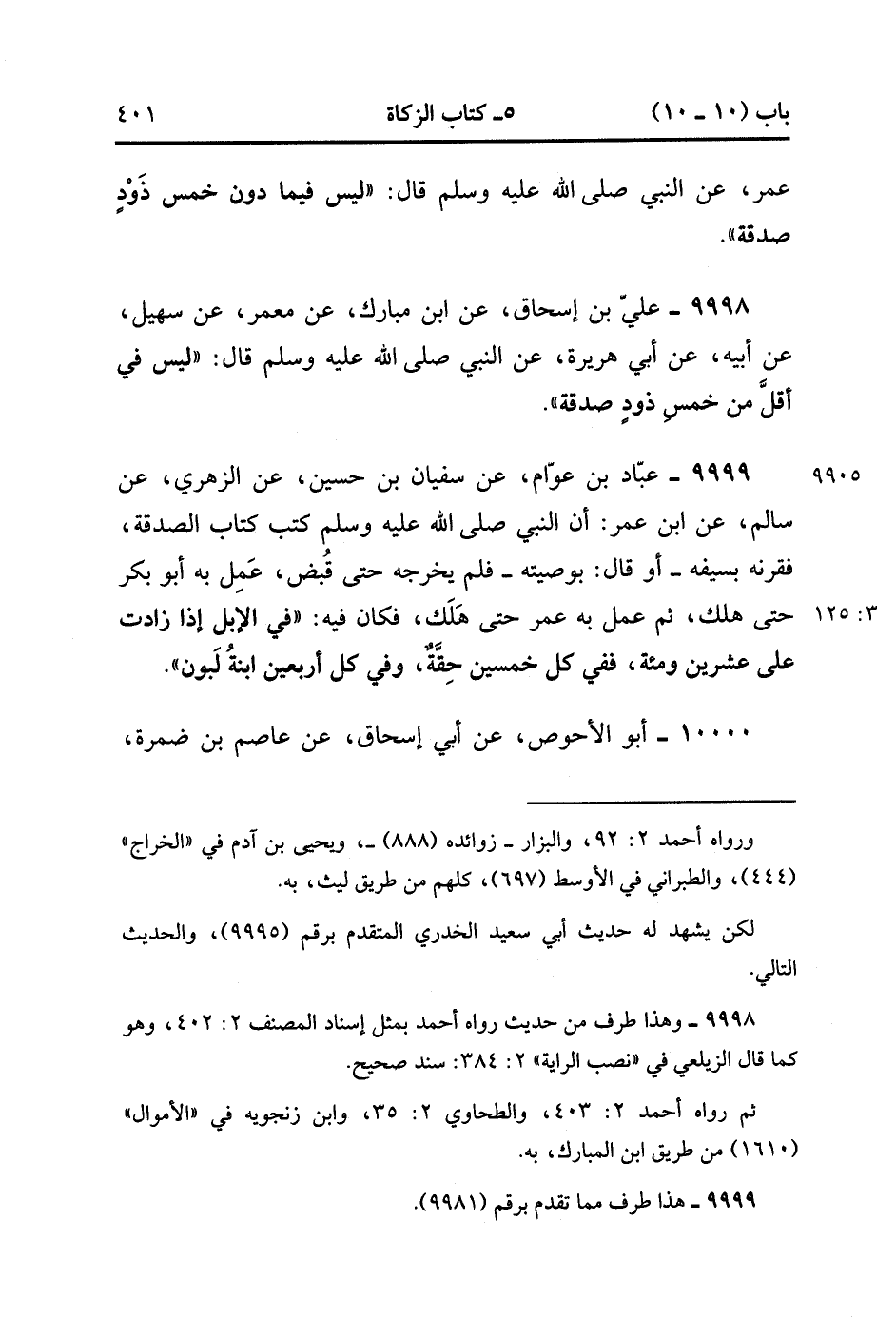 9998- حَدَّثَنَا عَلِيُّ بْنُ إِسْحَاقَ ، عَنِ ابْنِ مُبَارَكٍ ، عَنْ مَعْمَرٍ ، عَنْ سُهَيْلٍ ، عَنْ أَبِيهِ ، عَنْ أَبِي هُرَيْرَةَ ، عَنِ النَّبِيِّ صَلَّى الله عَلَيْهِ وَسَلَّمَ ، قَالَ : لَيْسَ فِي أَقَلَّ مِنْ خَمْسِ ذَوْدٍ صَدَقَةٌ.