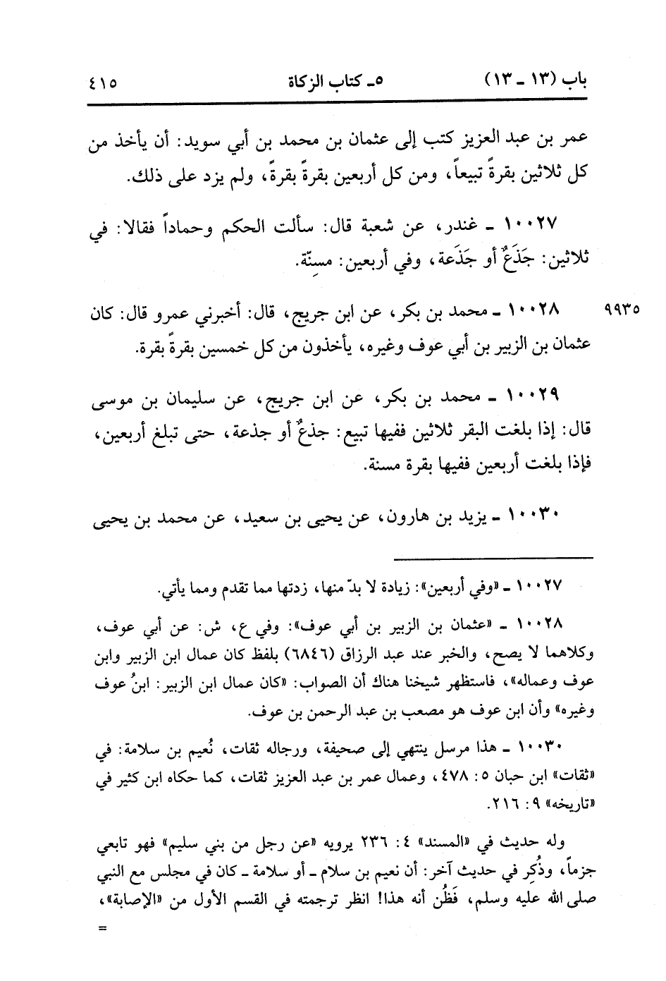 10028- حَدَّثَنَا مُحَمَّدُ بْنُ بَكْرٍ ، عَنِ ابْنِ جُرَيْجٍ ، قَالَ : أَخْبَرَنِي عَمْرٌو ، قَالَ : كَانَ عُثْمانُ بْنُ الزُّبَيْرِ بْنِ أَبِي عَوْفٍ وَغَيْرُهِ يَأْخُذُونَ مِنْ كُلِّ خَمْسِينَ بَقَرَةً بَقَرَةً.