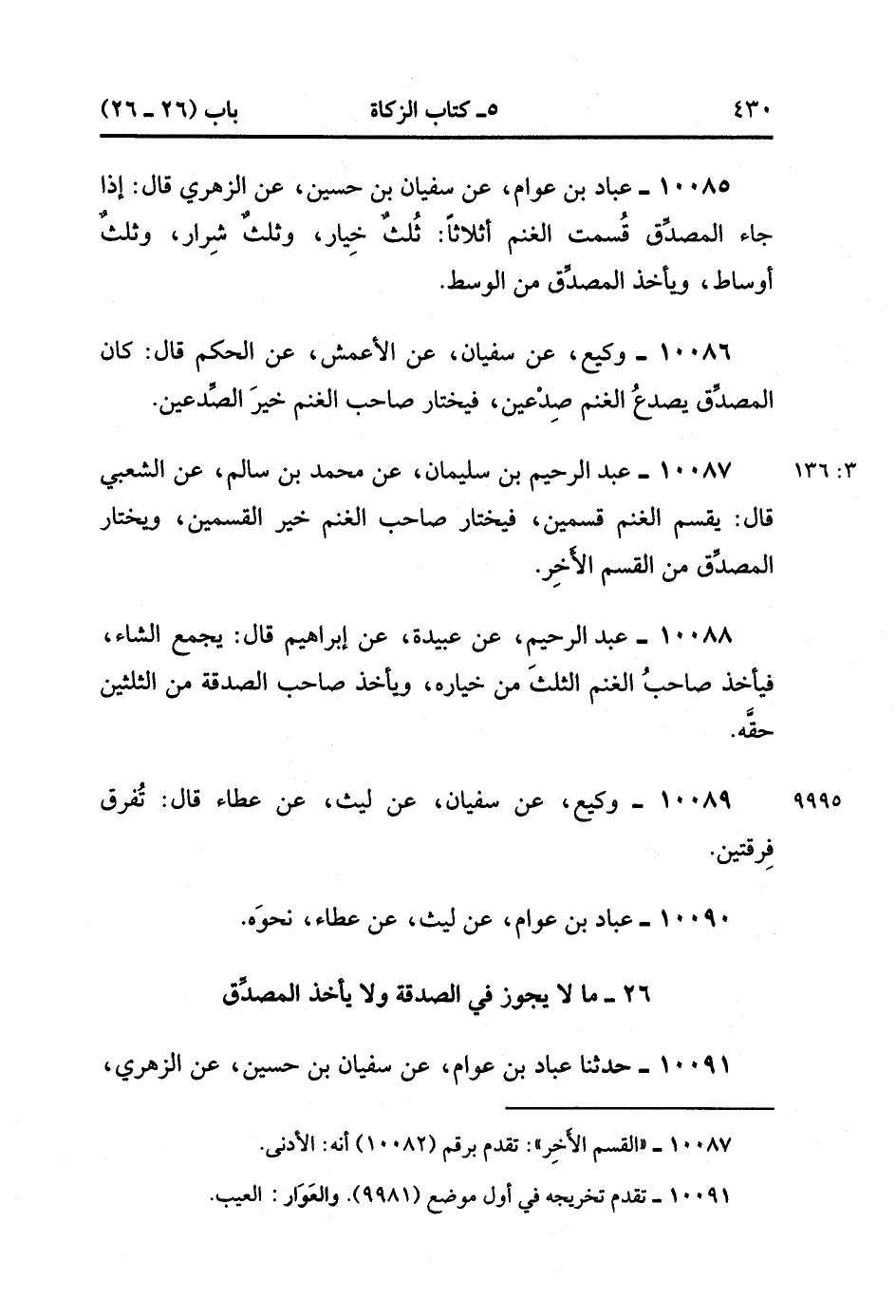 10087- حَدَّثَنَا عَبْدُ الرَّحِيمِ بْنُ سُلَيْمَانَ ، عَنْ مُحَمَّدِ بْنِ سَالِمٍ ، عَنِ الشَّعْبِيِّ ، قَالَ : يَقْسِمُ الْغَنَمَ قِسْمَيْنِ ، فَيَخْتَارُ صَاحِبُ الْغَنَمِ خَيْرَ الْقِسْمَيْنِ ، وَيَخْتَارُ الْمُصَدِّقُ مِنَ الْقَسَمِ الأَخرَ.