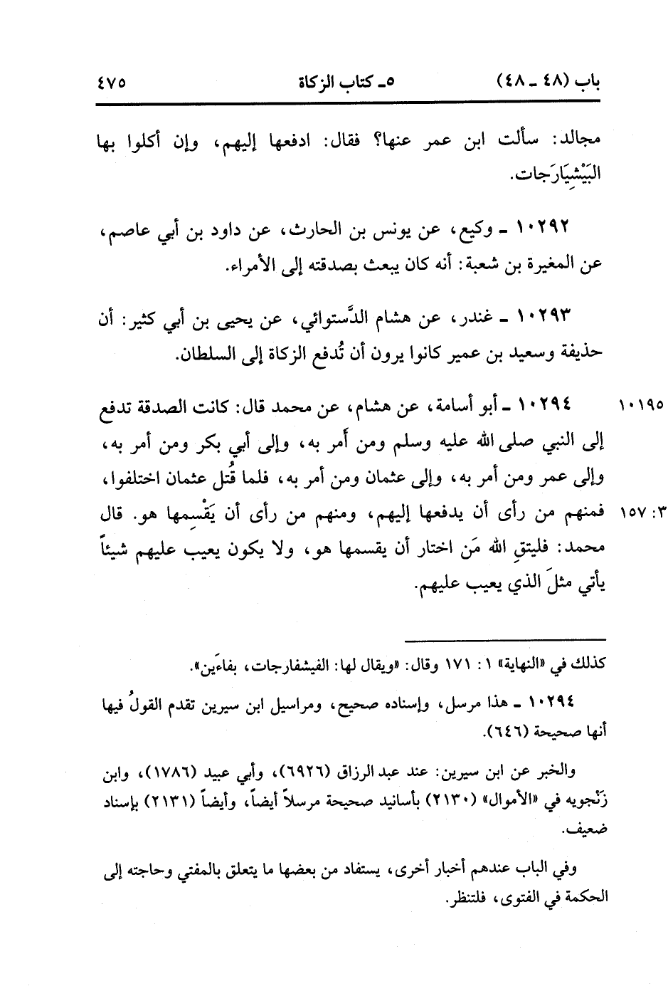 10294- حَدَّثَنَا أَبُو أُسَامَةَ ، عَنْ هِشَامٍ ، عَنْ مُحَمَّدٍ ، قَالَ : كَانَتِ الصَّدَقَةُ تُدْفَعُ إلَى النَّبِيِّ صَلَّى الله عَلَيْهِ وَسَلَّمَ وَمَنْ أَمَرَ بِهِ ، وَإِلَى أَبِي بَكْرٍ وَمَنْ أَمَرَ بِهِ ، وَإِلَى عُمَرَ وَمَنْ أَمَرَ بِهِ ، وَإِلَى عُثْمَانَ وَمَنْ أَمَرَ بِهِ ، فَلَمَّا قُتِلَ عُثْمَانَ اخْتَلَفُوا ، فَمِنْهُمْ مَنْ رَأَى أَنْ يَدْفَعَهَا إلَيْهِمْ ، وَمِنْهُمْ مِنْ رَأَى أَنْ يَقْسِمَهَا هُوَ . قَالَ مُحَمَّدٌ : فَلْيَتَّقِ اللَّهَ مَنِ اخْتَارَ أَنْ يَقْسِمَهَا هُوَ ، وَلاَ يَكُونَ يَعِيبُ عَلَيْهِمْ شَيْئًا ، يَأْتِي مِثْلُ الَّذِي يَعِيبُ عَلَيْهِمْ. (3/156).