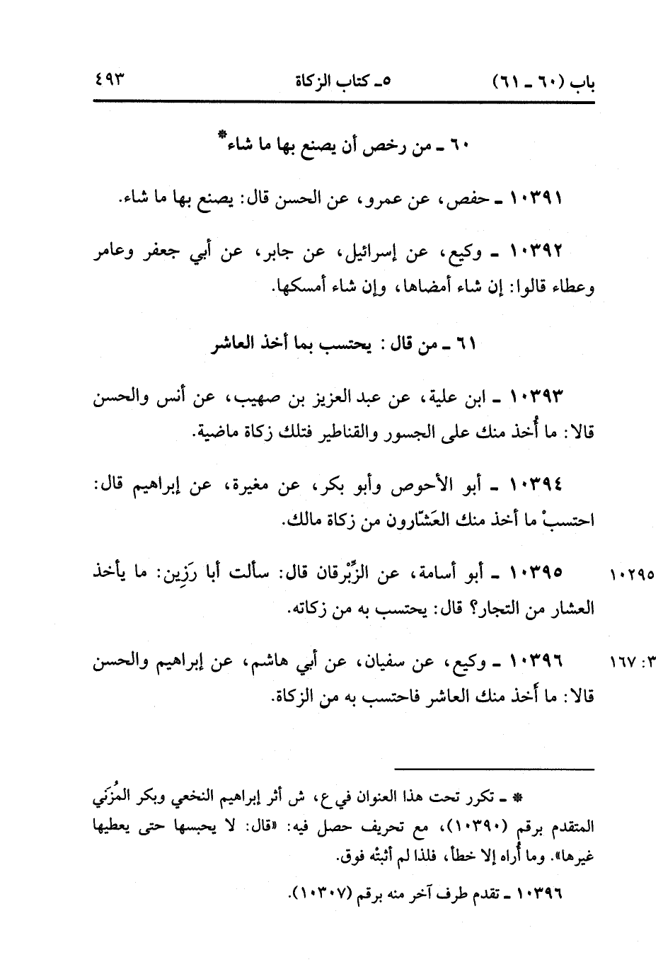 10394- حَدَّثَنَا أَبُو الأَحْوَصِِ ، وَأَبُو بَكْرٍ ، عَنْ مُغِيرَةَ ، عَنْ إبْرَاهِيمَ ، قَالَ : احْتَسِبْ مَا أَخَذَ مِنْكَ الْعَشَّارُونَ مِنْ زَكَاةِ مَالِك.