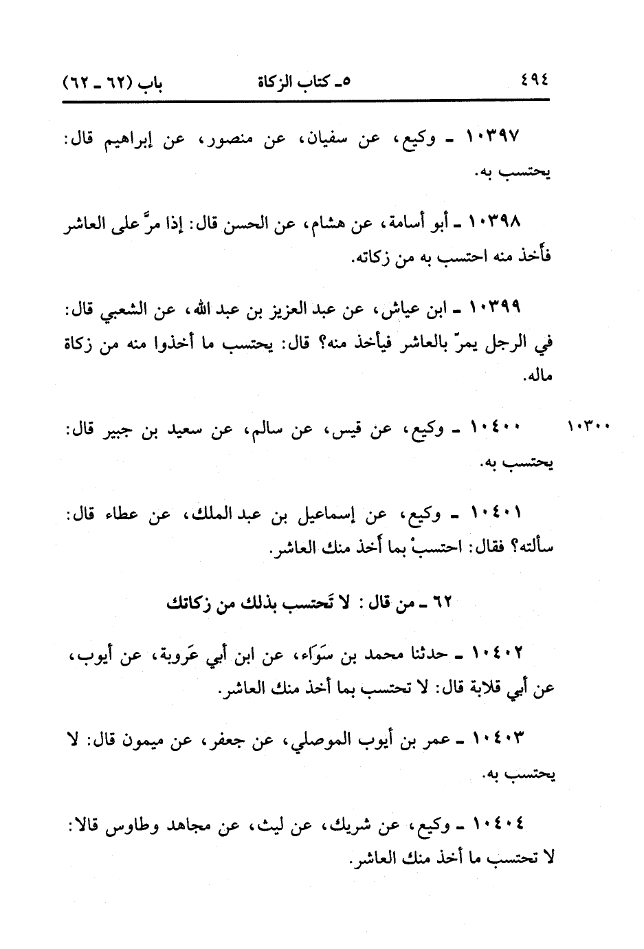 10402- حَدَّثَنَا مُحَمَّدُ بْنُ سَوَاءٍ ، عَنِ ابْنِ أَبِي عَرُوبَةَ ، عَنْ أَيُّوبَ ، عَنْ أَبِي قِلاَبَةَ ، قَالَ : لاَ تَحْتَسِبْ بِمَا أَخَذَ مِنْك الْعَاشِرُ.
