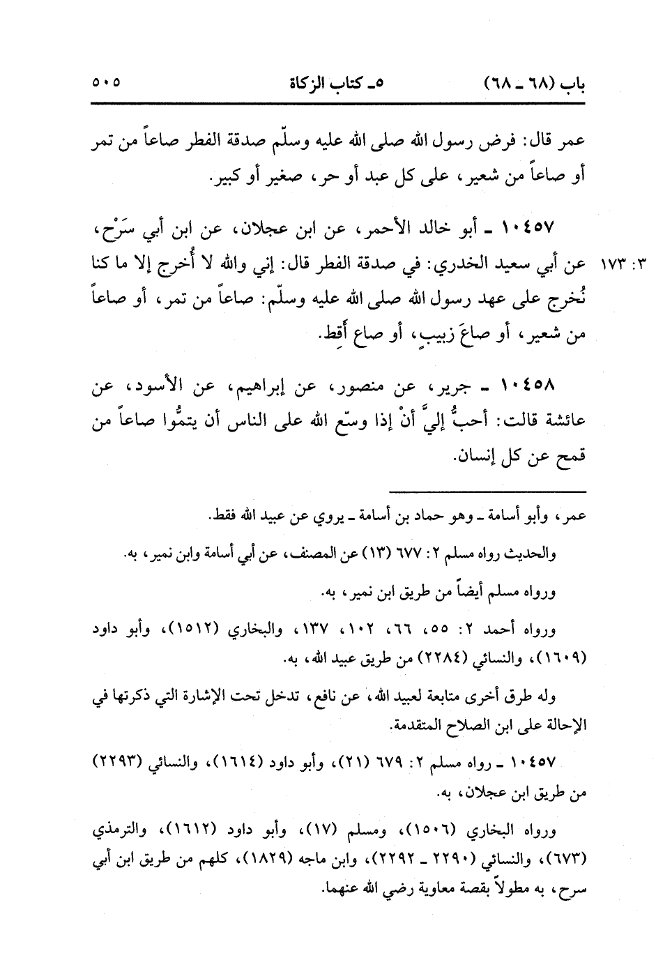10458- حَدَّثَنَا جَرِيرٌ ، عَنْ مَنْصُورٍ ، عَنْ إبْرَاهِيمَ ، عَنِ الأَسْوَد ، عَنْ عَائِشَةَ ، قَالَتْ : أحبَّ إِلَيَّ أَنَّ إذَا وَسَّعَ اللَّهُ عَلَى النَّاسِ ، أَنْ يُتِمُّوا صَاعًا مِنْ قَمْحٍ عَنْ كُلِّ إنْسَانٍ. (3/173).