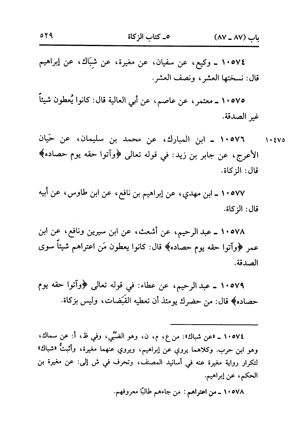 10578- حَدَّثَنَا عَبْدُ الرَّحِيمِ ، عَنْ أَشْعَثَ ، عَنِ ابْنِ سِيرِينَ ، وَنَافِعٍ ، عَنِ ابْنِ عُمَرَ ؛ {وَآتُوا حَقَّهُ يَوْمَ حَصَادِهِ} قَالَ : كَانُوا يُعْطُونَ مِن اعْتِرَاهم شَيئًا سِوَى الصَّدَقَةَ.