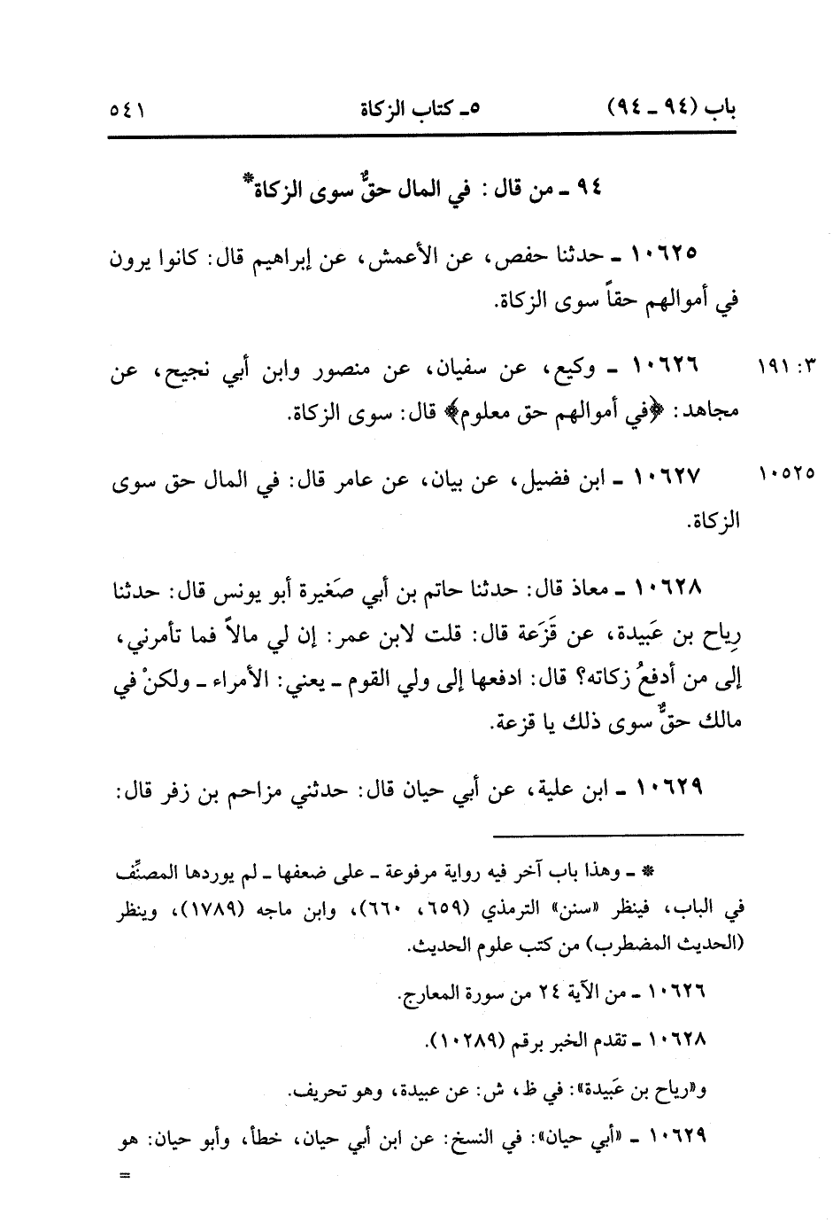 94- مَنْ قَالَ فِي الْمَالِ حَقٌّ سِوَى الزَّكَاةِ.
