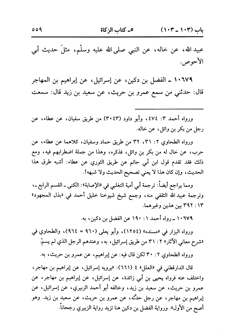 10679- حَدَّثَنَا الْفَضْلُ بْنُ دُكَيْنٍ ، عَنْ إسْرَائِيلَ ، عَنْ إبْرَاهِيمَ بْنِ الْمُهَاجِرِ ، قَالَ : حدَّثَنِي مَنْ سَمِعَ عَمْرَو بْنَ حُرَيْثٍ ، عَنْ سَعِيدِ بْنِ زَيْدٍ ، قَالَ : سَمِعْتُ رَسُولَ اللهِ صَلَّى الله عَلَيْهِ وَسَلَّمَ يَقُولُ : يَا مَعْشَرَ الْعَرَبِ ، احْمَدُوا اللَّهَ الَّذِي وَضَعَ عَنْكُمُ الْعُشُورَ. (3/197).