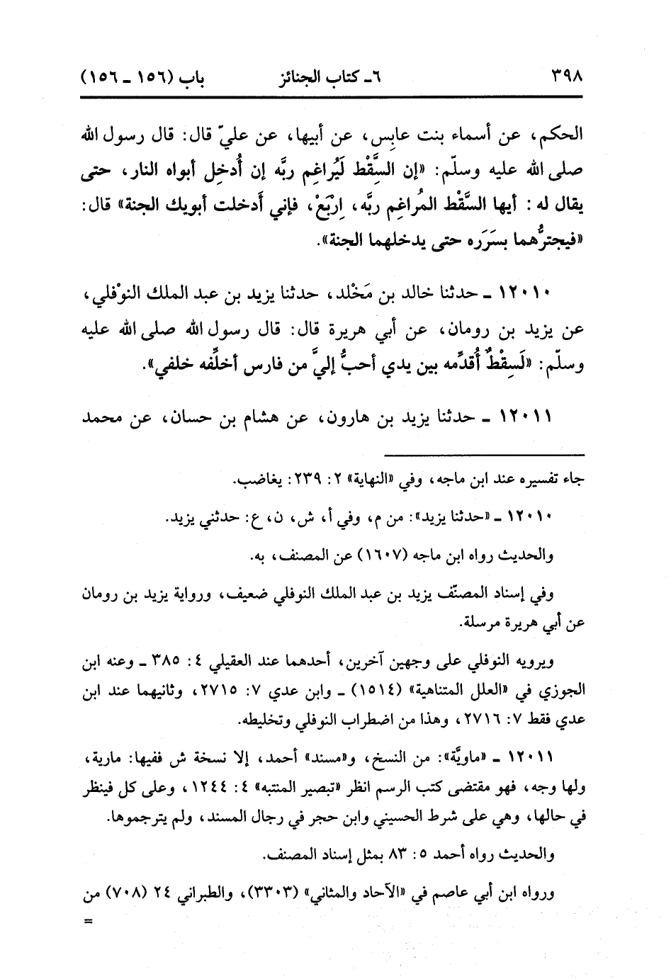 12010- حدَّثَنَا خَالِدُ بْنُ مَخْلَدٍ ، حَدَّثَنا يَزِيدُ بْنُ عَبْدِ الْمَلِكِ النَّوْفَلِيُّ ، عَنْ يَزِيدَ بْنِ رُومَانَ ، عَنْ أَبِي هُرَيْرَةَ ، قَالَ : قَالَ رَسُولُ اللهِ صَلَّى الله عَلَيْهِ وَسَلَّمَ : لَسِقْط أُقَدِّمُهُ بَيْنَ يَدَيَّ أَحَبُّ إلَيَّ مِنْ فَارِسٍ أَخْلُفُهُ خَلْفِي. (3/354).